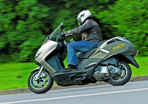 Od kilku lat wśród skuterów wyraźnie rozwija się klasa 300 ccm. Czemu akurat trzysta, skoro „dwieściepięćdziesiątki” miały się dobrze? Odpowiedź wydaje się prosta. Jeśli mamy już silnik 250 ccm, wystarczy zwiększyć średnicę cylindra lub – zmieniając wał korbowy – skok tłoka i otrzymamy wyższy moment obrotowy oraz zazwyczaj trochę większą moc.