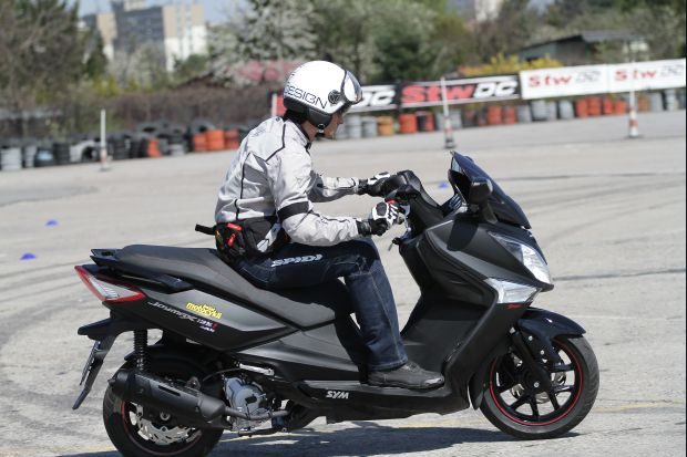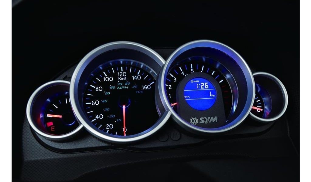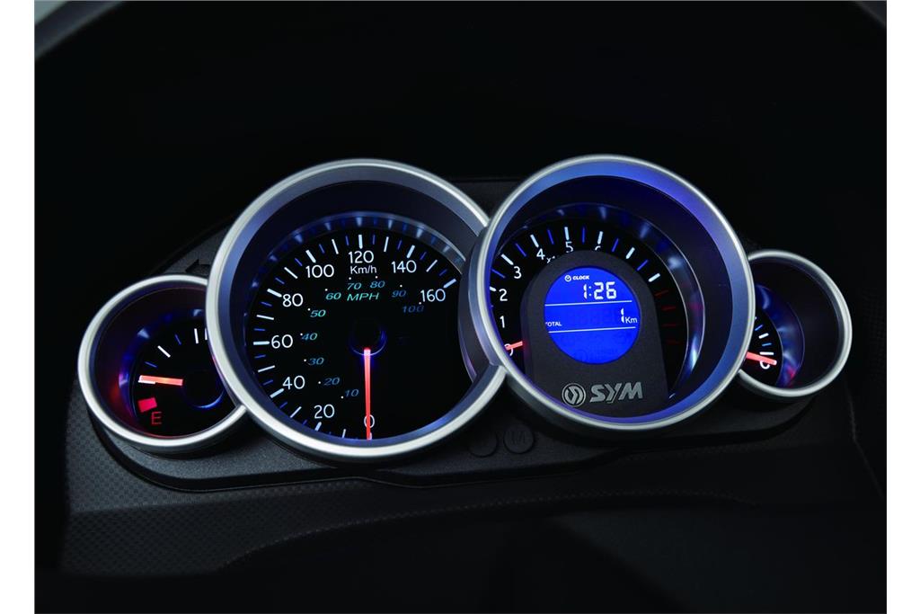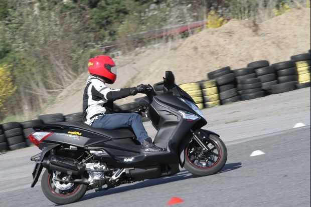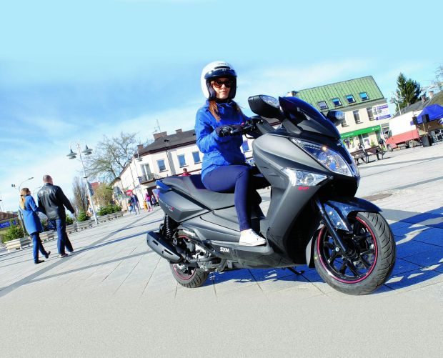 Duży skuter jest jak duży samochód: oferuje lepszy komfort jazdy i bogate wyposażenie. Zwłaszcza pod tym ostatnim względem SYM przoduje nad konkurentami w swojej klasie. Ma zintegrowany układ hamulcowy z ABS-em, który nie ingeruje zbyt szybko i pozwala uzyskać wysokie opóźnienia. Zintegrowanie układu pozwala używać jedynie lewej dźwigni do hamowania, gdyż uruchamia ona tylny zacisk hamulcowy i częściowo przedni. Dopiero do hamowania awaryjnego trzeba użyć obu dźwigni.