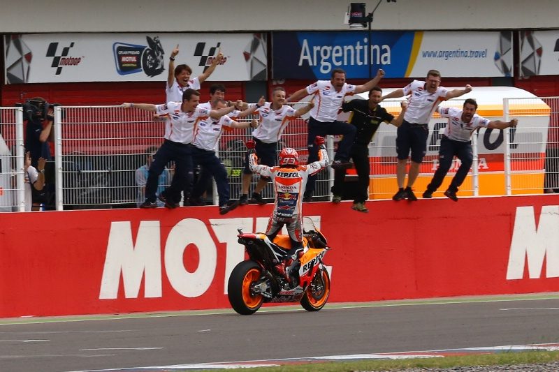 Ten sezon nie przestaje nas zaskakiwać. Pierwszy wyścig należał do Jorge Lorenzo. Tym razem już na początku wyścigu obrońca tytułu musiał pożegnać się z rywalizacją kończąc w żwirze. Na prowadzeniu znalazł się Marc Marquez, który aż do obowiązkowej wymiany motocykli (chodziło o bezpieczeństwo zawodników i zmianę opon) musiał walczyć z Rossim. Po wizycie w boksach sytuacja znacząco się zmieniło. Vale miał problem z motocyklem i tracił tempo.