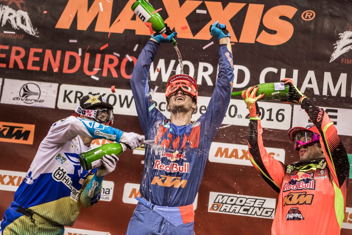 To była noc Coltona Haakera (HUSQVARNA) i mimo tego, że Amerykanin nie wygrał całej rundy, zajął odpowiednio trzecie, drugie i trzecie miejsce w finałach. To właśnie on sięgnął po drugi z rzędu tytuł Mistrza Świata SuperEnduro – „Niesamowite – absolutnie niewiarygodne jest zdobycie drugiego tytułu, to był fantastyczny sezon, w każdej rundzie mieliśmy zacięte bitwy. Dlatego zakończenie rywalizacji z numerem jeden to naprawdę coś wielkiego”. Podczas ostatniej rundy sezonu we francuskim Albi ponownie mieliśmy okazję zobaczyć niezwykle zaciętą walkę na każdym centymetrze toru. Ponieważ tytuł Mistrza Świata nie był jeszcze przesądzony, podobnie jak podczas rundy w Bilbao, najbardziej interesowała nas rywalizacja Haaker – Gomez – Walker. Między pierwszą dwójką różnica punktowa liczyła jedenaście punktów, tak więc jeszcze wiele mogło się zdarzyć. Podobnie jak dwa tygodnie wcześniej, od zwycięstwa walkę rozpoczął Jonny Walker. Wyższość Brytyjczyka musieli uznać zarówno Gomez, jak i Colton Haaker. A sprawa tytułu wciąż nie była rozstrzygnięta. Kolejne dwa wyścigi wieczoru to dominacja Alfredo Gomeza i mimo iż Hiszpan sięgnął drugi raz po najwyższy stopień podium wygrywając rundę we Francji to nie on, a Amerykanin Colton Haaker mógł cieszyć się z tytułu mistrzowskiego. Hiszpański zawodnik KTMa musiał zadowolić się srebrnym medalem Mistrzostw Świata, kończąc sezon z zaledwie siedmiopunktową stratą do najlepszego w tym sezonie Haakera. Brąz dla Jonnego Walkera, dla którego jest to już piąty medal w tym kolorze. W klasie junior w swoim debiutanckim sezonie po najwyższe laury sięgnął reprezentant Republiki Południowej Afryki, Blake Gutzeit. -„Dla mnie jest to jak sen, tak ciężko pracowałem, by zostać się mistrzem świata i udało się! To jest niesamowite uczucie i trochę czasu minie, zanim przyzwyczaję się do tego ” – podsumował Gutzeit.