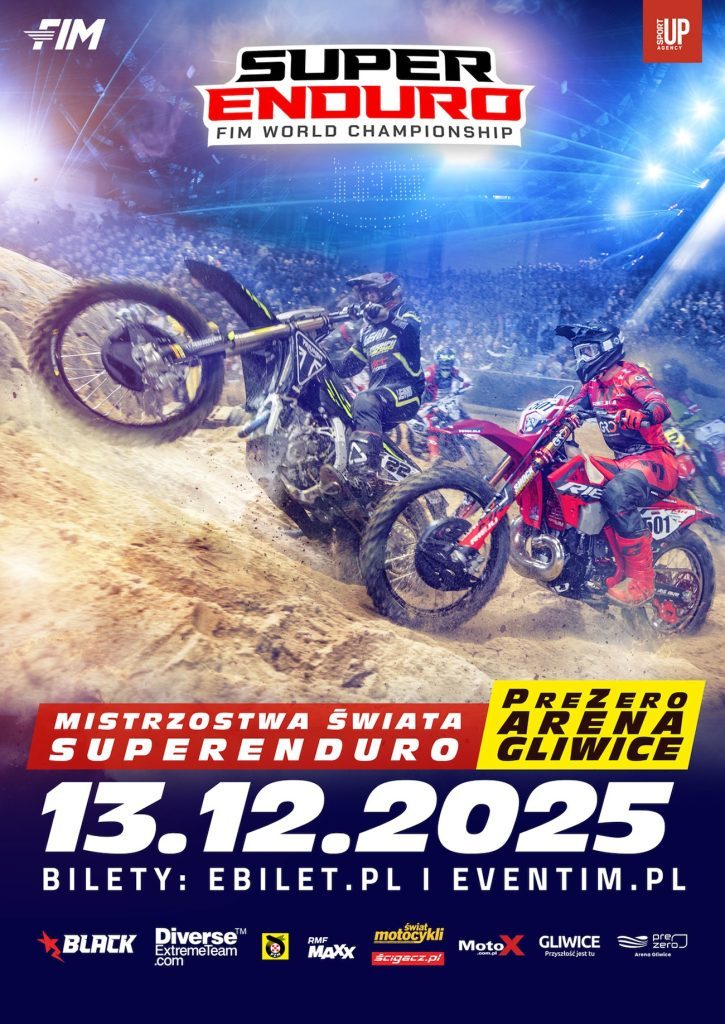 Pierwsza runda motocyklowych Mistrzostw Świata FIM SuperEnduro ponownie w Polsce! 13 grudnia 2025 r. PreZero Arena Gliwice zamieni się w najbardziej ekstremalną halę świata. Już teraz możesz zagwarantować sobie miejsce – sprzedaż biletów właśnie ruszyła!