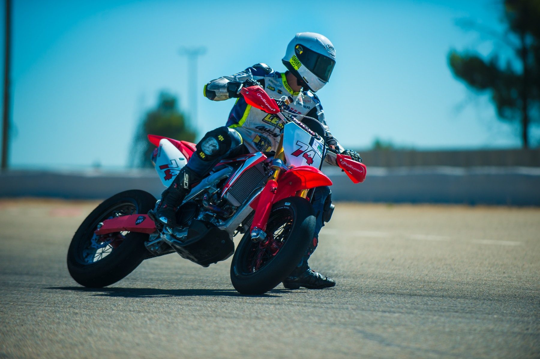 „To był kolejny emocjonujący weekend – mówi Piotr Biesiekirski, który w zawodach Supermoto startuje Hondą CRF 450R. – Po udanych kwalifikacjach ruszałem do obu wyścigów z szóstego pola i w pierwszym z nich szybko przebiłem się na trzecie miejsce. Kolejne dziesięć okrążeń było świetną lekcją defensywnej i ostrej jazdy. Później po małym błędzie musiałem nadrabiać straty. Walczyliśmy tak zaciekle, że nawet zderzyliśmy się z jednym z rywali, co zakończyło się dla niego wywrotką. Po wyścigu uścisnęliśmy sobie jednak ręce i wszystko było w porządku. Niestety, zamieszanie na finiszu i mały błąd kosztowały mnie spadek na siódmą pozycję, ale ważniejsza od wyniku była dzisiaj nauka. Cieszy mnie także to, że w porównaniu do poprzedniej rundy zredukowałem swoją stratę do zwycięzcy z 1,5 sekundy do zaledwie siedmiu dziesiątych na okrążeniu, a to duża poprawa, biorąc pod uwagę fakt, że dopiero debiutuję w zawodach Supermoto. Drugi wyścig przebiegał nieco spokojniej, ale zakończył się dla mnie jeszcze lepszym, piątym miejscem, dzięki czemu jestem także piąty w tabeli. Ostatnie trzy tygodnie przepracowaliśmy bardzo intensywnie i dzisiaj widzieliśmy tego efekty, co bardzo nas wszystkich cieszy. Kolejna runda Supermoto czeka mnie w połowie czerwca, a teraz przed nami dwa weekendy na wyścigowym Moriwaki.”