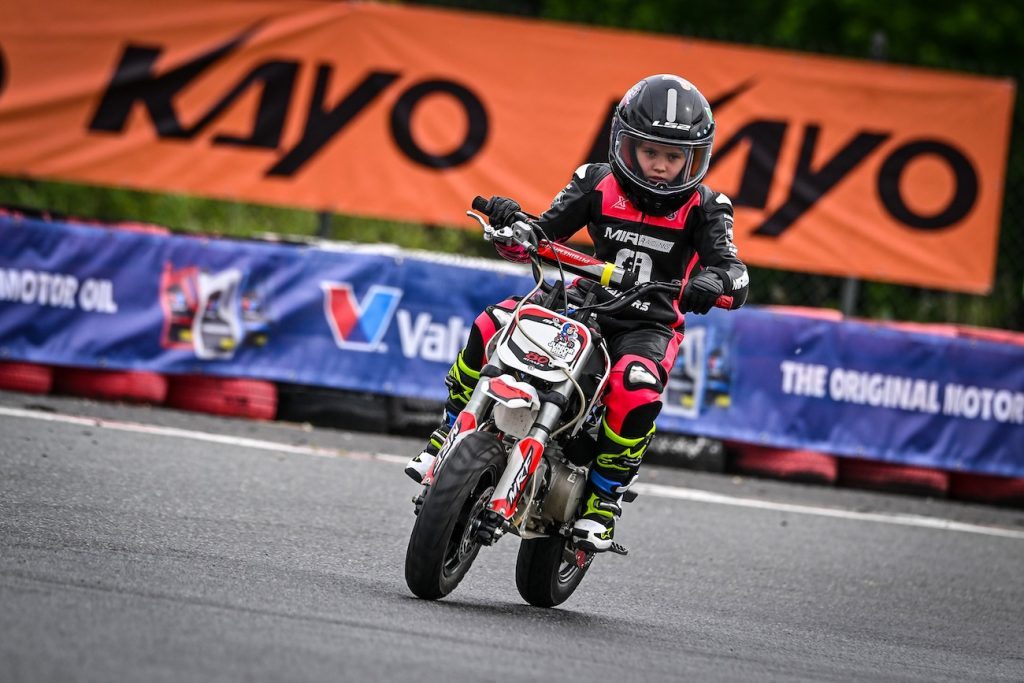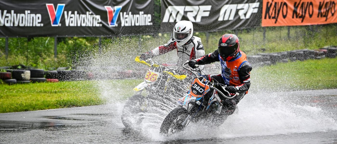 Od początku weekendu nad torem wisiały ciężkie chmury, zapowiadające, że wyścigowe emocje zostaną wzbogacone o nieprzewidywalne warunki pogodowe. Choć przez większość soboty tor pozostawał suchy, zawodnicy na minimotocyklach YCF, MRF i KAYO musieli być cały czas gotowi na nagłą zmianę warunków. Niedziela tylko potwierdziła, jak kapryśna potrafi być pogoda – ostatni wyścig odbył się już w strugach deszczu, zamieniając walkę o podium w prawdziwie heroiczną próbę umiejętności, odwagi i opanowania. Ostatni wyścig – rozgrywany na mokrej nawierzchni – przejdzie do historii jako pokaz determinacji i technicznego kunsztu zawodników.