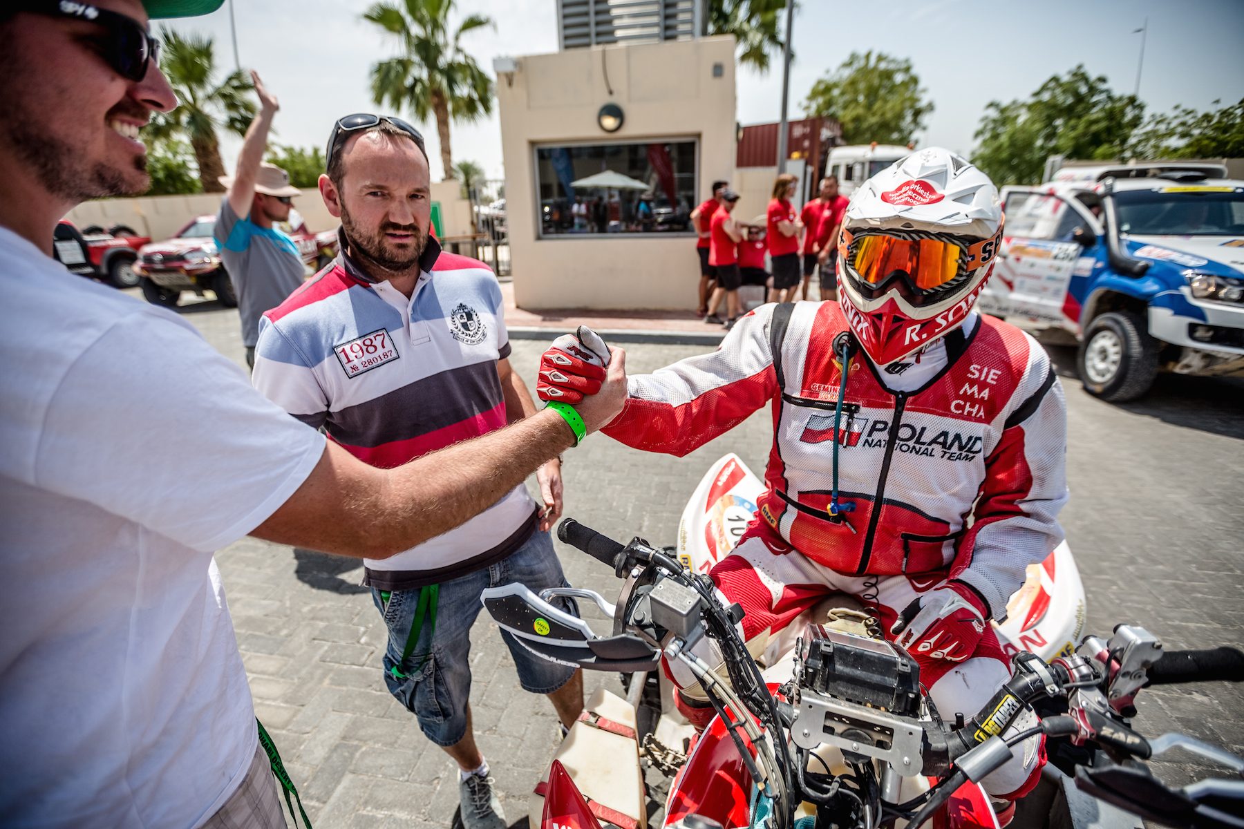 ”SuperSonik„ przyznał również, że przez lata nauczył się, jak walczyć na wydmach Zjednoczonych Emiratów Arabskich. ”Ta pustynia jest niesamowicie wymagająca, ale i piękna. Jeśli nauczyć się po niej jeździć, to poza ogromnym wysiłkiem będziemy czuć również radość. Ja na tym rajdzie doświadczyłem jej bardzo wiele. A wcale nie był łatwy. Szczególnie dziś, kiedy rozwiązanie zaproponowane przez Jarka Zająca, mojego mechanika, zdało egzamin i przednie amortyzatory działały już bez zarzutu.„