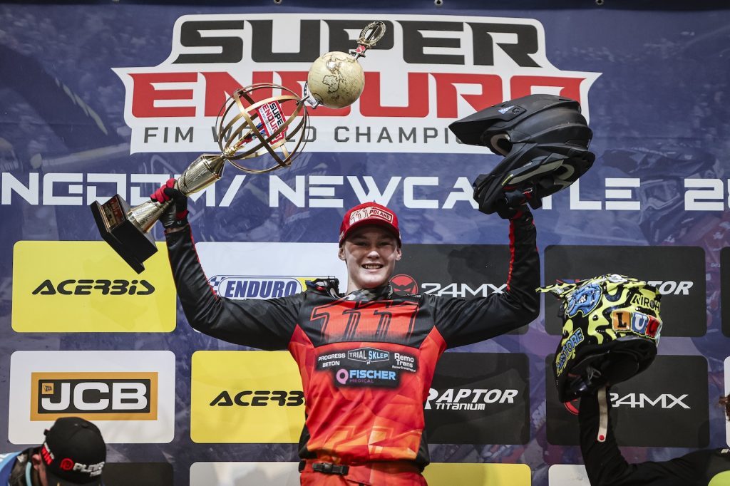 Polak Wojtek Walczak (KTM), lider klasyfikacji generalnej już od pierwszej rundy mistrzostw, przypieczętował znakomity sezon zdobywając Puchar Świata FIM Youth SuperEnduro dzięki zwycięstwu w Newcastle.