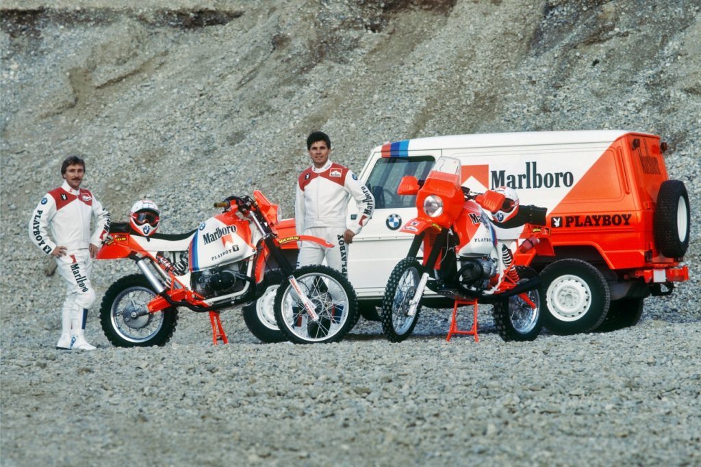 Rok 1985 był przełomowym w Dakarze. Po początkowych lokalnych sukcesach sprzedażowych dual-sportów Yamahy i BMW we Francji, już w siódmej edycji pojawili się duzi międzynarodowi sponsorzy, w tym producenci papierosów. Fabryczna ekipa Porsche wystartowała w barwach Rothmans, Opel z naklejkami Bastos, a sponsorem BMW zostało Marlboro, tworząc najbardziej kultowe oklejenie rajdowego motocykla. Auriol odszedł do włoskiej Cagivy (chociaż w barwach Ligiera – francuskiego producenta nadwozi, właściciela zespołu F1), a w oficjalnych barwach BMW Marlboro Playboy pojawili się: wspomniany wcześniej Rahier, kilkukrotny mistrz świata enduro z Niemiec Eddie Hau oraz ponownie Loizeaux. Z ekipy fabrycznej dojechał jedynie Rahier, dla którego było to drugie dakarowe zwycięstwo, a sukces powtórzył jeszcze w 1986 roku W ten sposób, od potrzeb wywiadowczych wykreowane zostały dwie istniejące do dziś legendy. Rajd Dakar oraz BMW GS.