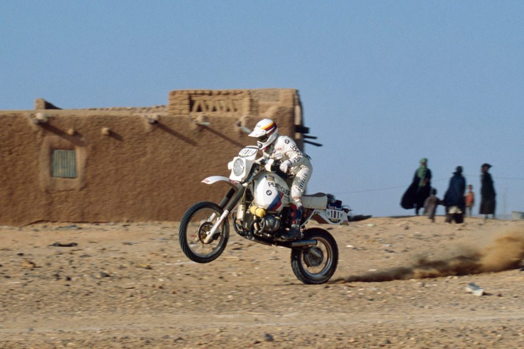 W latach 60-tych we Francuskiej Afryce Równikowej kilkanaście państw proklamowało swoją niepodległość. W tym samym czasie trwała krwawa wojna o niepodległość Algierii, po której milion Francuzów musiało opuścić kraj, pozostawiając nie tylko Algierczyków walczących po ich stronie, ale także swoje majątki. Konflikt był na tyle brutalny, że dopiero po 30 latach władze Francji zalegalizowały go jako „wojnę”. Aby móc w miarę bezpieczny sposób przenikać na te tereny, francuski wywiad zainicjował organizację rajdów przeprawowych przez swoje byłe kolonie. Podczas jednego z nich, rajdu Coast-to-Coast (z Wybrzeża Kości Słoniowej na Lazurowe Wybrzeże), na pustyni Ténéré na kilka dni zabłądził jeden z uczestników – Thierry Sabine. W jego głowie zrodził się pomysł rajdu zupełnie innego od dotychczasowych, które prowadziły, co prawda szutrowymi, ale drogami. Jego trasa miała biec przez, jak się później okazało, morderczą Saharę. W tym samym czasie Niemcy ogłosili powstanie nowej kategorii motocykli w narodowych mistrzostwach enduro: +750 ccm. Trzech pracowników działu testowego zostało wyłączonych z codziennych fabrycznych zajęć i jako HPN (Halbfeld – Pepperl – Neher) rozpoczęli budowę prototypu, poskładanego w większości z dostępnych wcześniej części. Oznaczyli go jako G/S (Gelände/Straße) – pierwszego dual sporta z dużym silnikiem.
