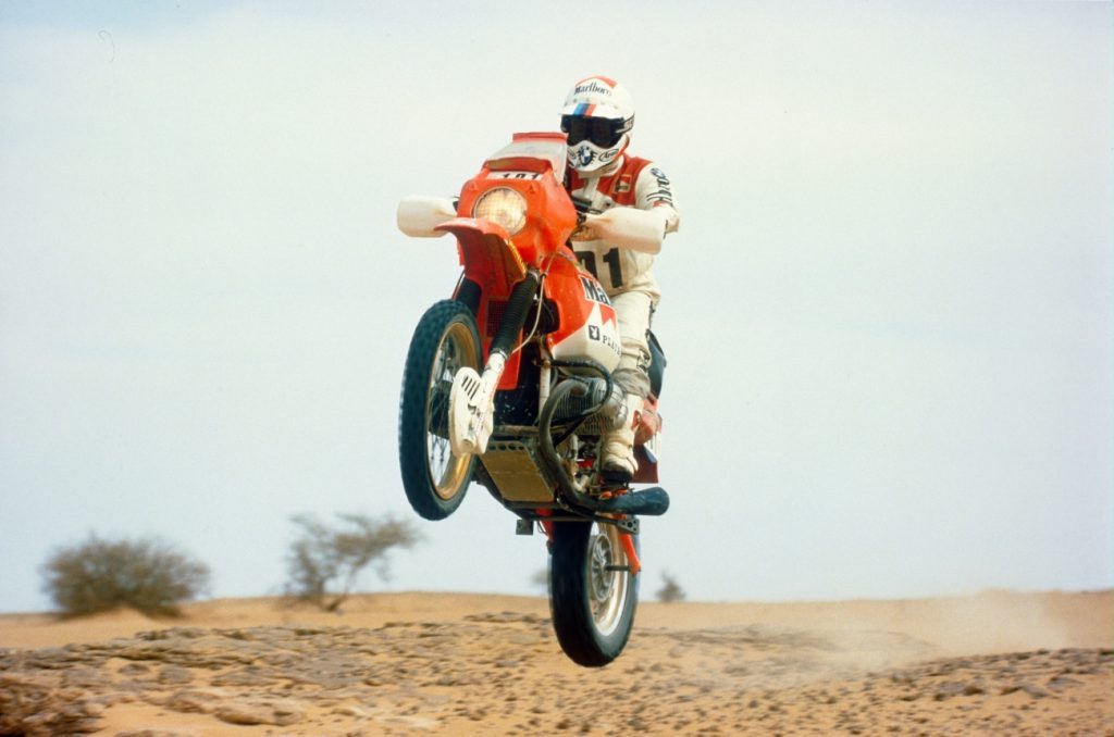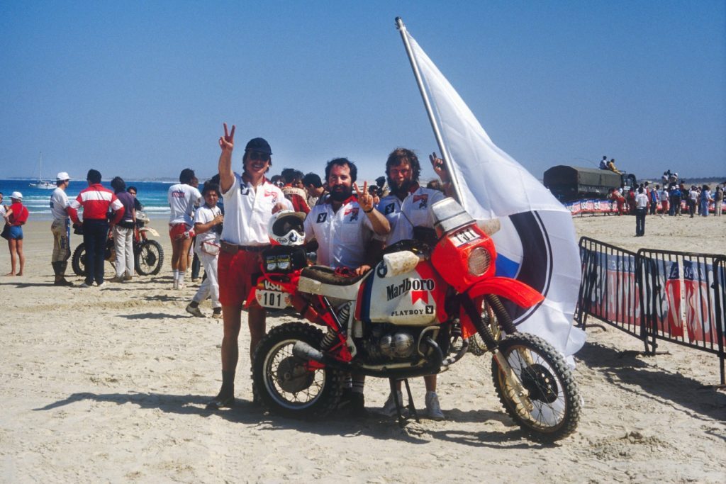 Pod Wieżą Eiffla na starcie pierwszego Rajdu Paryż-Dakar, Thierry Sabine zdołał zgromadzić aż 182 załogi. Z pierwszym numerem wystartowała jedna z siedmiu kobiet – Corinne Koppenhague. Po wypadku w czasie jednego z europejskich etapów i 10 godzinach jazdy ze złamaną w dwóch miejscach stopą, przyjaciele zawieźli ją na prześwietlenie i musiała wycofać się ze zmagań. Większość zawodników wybrała Yamahy 500 XT i Hondy 250 XLS, jednak współautor trasy, dziennikarz Jean-Claude Morellet, jadący pod pseudonimem „Fenouil”, otrzymał przedpremierowo motocykl BMW R80 G/S. W kolejnym roku Hubert Auriol, jadący w pierwszej edycji Yamahą, zapragnął mocniejszego sprzętu i wystartował R80 wystawionym przez BMW France. Co prawda został zdyskwalifikowany za podróż na pace lokalnej ciężarówki, a nie na kołach motocykla, jednak w kolejnym roku BMW zleciło już przygotowanie fabrycznych motocykli ekipie HPN. Auriol zrehabilitował się, wygrywając w klasyfikacji generalnej z przewagą niemalże 3 godzin! W zespole pojechał kolejny raz Fenouil (był czwarty) oraz policjant (a później członek motocyklowej eskorty prezydenta) Raymond Loizeaux, który zakończył zmagania na 15. miejscu.