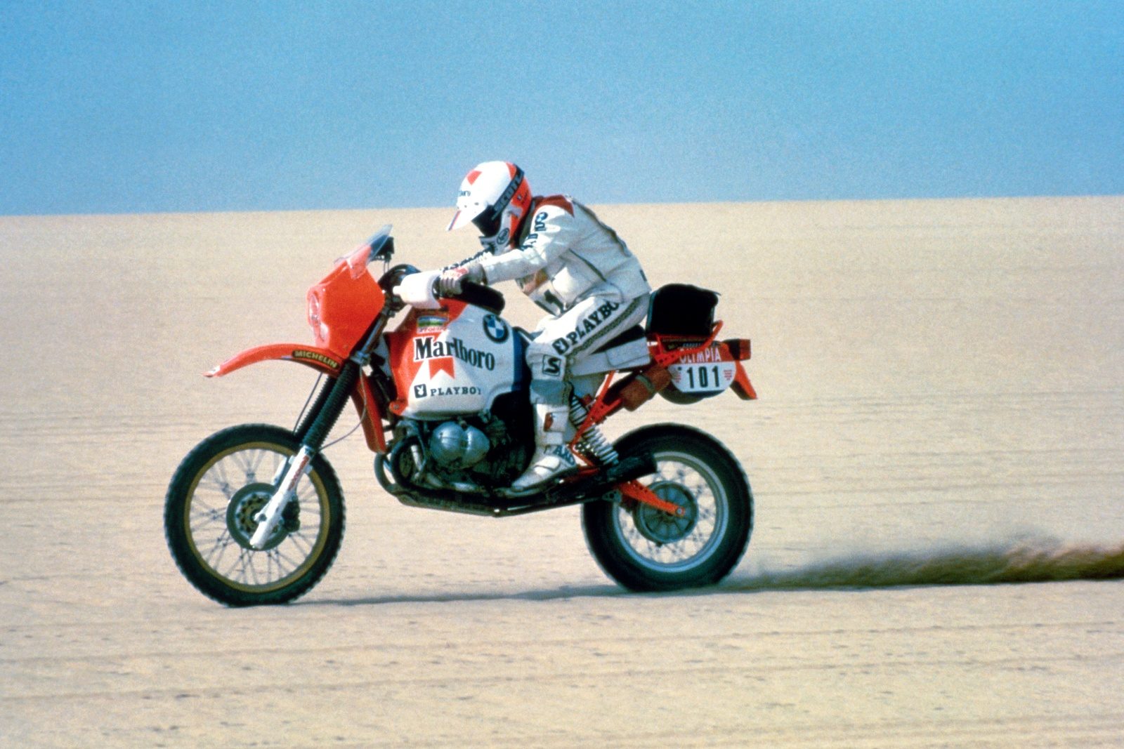 Pod Wieżą Eiffla na starcie pierwszego Rajdu Paryż-Dakar, Thierry Sabine zdołał zgromadzić aż 182 załogi. Z pierwszym numerem wystartowała jedna z siedmiu kobiet – Corinne Koppenhague. Po wypadku w czasie jednego z europejskich etapów i 10 godzinach jazdy ze złamaną w dwóch miejscach stopą, przyjaciele zawieźli ją na prześwietlenie i musiała wycofać się ze zmagań. Większość zawodników wybrała Yamahy 500 XT i Hondy 250 XLS, jednak współautor trasy, dziennikarz Jean-Claude Morellet, jadący pod pseudonimem „Fenouil”, otrzymał przedpremierowo motocykl BMW R80 G/S. W kolejnym roku Hubert Auriol, jadący w pierwszej edycji Yamahą, zapragnął mocniejszego sprzętu i wystartował R80 wystawionym przez BMW France. Co prawda został zdyskwalifikowany za podróż na pace lokalnej ciężarówki, a nie na kołach motocykla, jednak w kolejnym roku BMW zleciło już przygotowanie fabrycznych motocykli ekipie HPN. Auriol zrehabilitował się, wygrywając w klasyfikacji generalnej z przewagą niemalże 3 godzin! W zespole pojechał kolejny raz Fenouil (był czwarty) oraz policjant (a później członek motocyklowej eskorty prezydenta) Raymond Loizeaux, który zakończył zmagania na 15. miejscu.