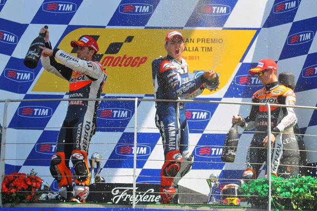 Po dwóch nieudanych wyścigach w Anglii i Holandii szczęście wróciło do Jorge Lorenzo, który niespodziewanie wygrał Grand Prix Włoch na torze Mugello. Idol miejscowej publiczności, Valentino Rossi był dopiero szósty z dużą stratą do czołówki.