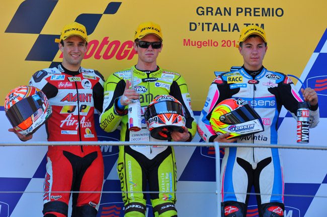 Na wysokości zadania stanął też lider klasyfikacji klasy 125 Nico Terol. Hiszpan, który opuścił poprzedni wyścig z powodu kontuzji tym razem od pierwszego zakrętu nadawał ton rywalizacji. Jedynym, który potrafił się za nim utrzymać był Johann Zarco. Francuz nawet wyszedł na prowadzenie na ostatnie dziewięć okrążeń, ale na mecie był drugi. Prosta w Mugello jest okropnie długa i po wyjściu z ostatniego zakrętu ogromną rolę odgrywa tunel aerodynamiczny. W klasie 125 jeszcze nigdy nie zdarzyło się, żeby w przypadku finiszu w grupie wygrał ten, który prowadził na wyjściu na prostą. Terol z pewnością o tym pamiętał i doskonale to wykorzystał. Dzięki piątemu zwycięstwu w tym roku umocnił się na pozycji lidera, a Zarco jest drugi. Na trzecie miejsce awansował Maverick Vinales, który w niedzielę stanął na najniższym stopniu podium i skorzystał na upadku Jonasa Folgera.