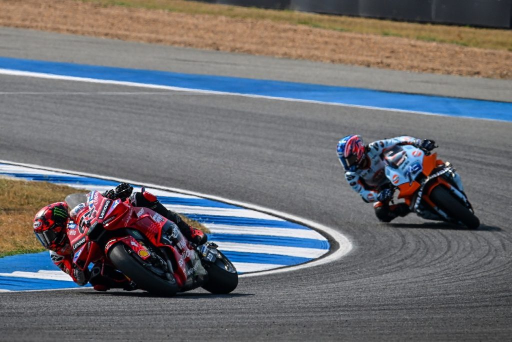 Ai Ogura za Pecco Bagnaią podczas sprintu MotoGP w Tajlandii.