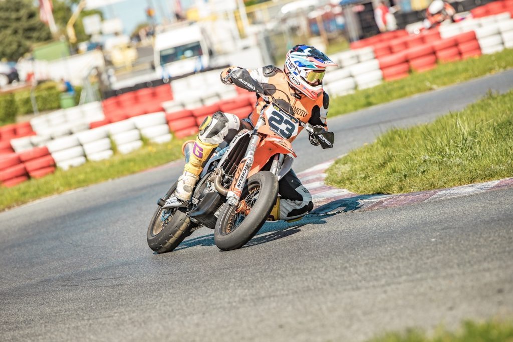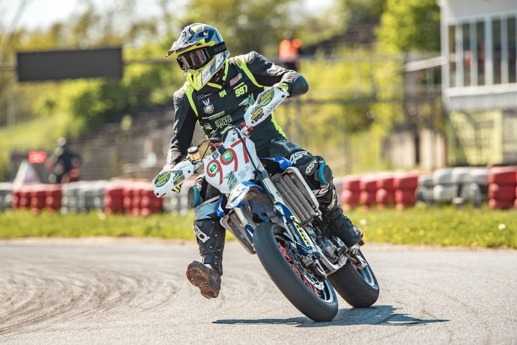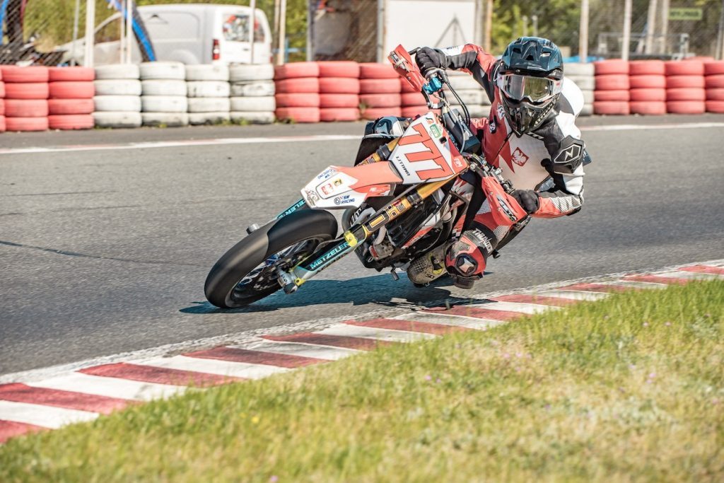 „Nigdy wcześniej nie jeździłem w supermoto – ścigałem się tylko na asfalcie: pitbike’i, Ninja 250… aż zobaczyłem mistrzostwa świata w Słomczynie w 2025 roku. To był moment, który wszystko zmienił. Połączenie asfaltu i off-roadu? Brzmiało hardkorowo – i właśnie dlatego musiałem spróbować. Już po pierwszej rundzie wiem, że to była świetna decyzja. Jazda na zmianę po torze i ziemi to totalna frajda! Off-road SM to dla mnie nowość, ale te uślizgi, skoki i szybki powrót na asfalt dają niesamowite emocje. Myślałem, że będzie dużo trudniej, a jest po prostu MEGA zabawa. Jeśli kochasz motory, adrenalinę i nowe wyzwania – spróbuj supermoto. Gwarantuję, że się zakochasz!”