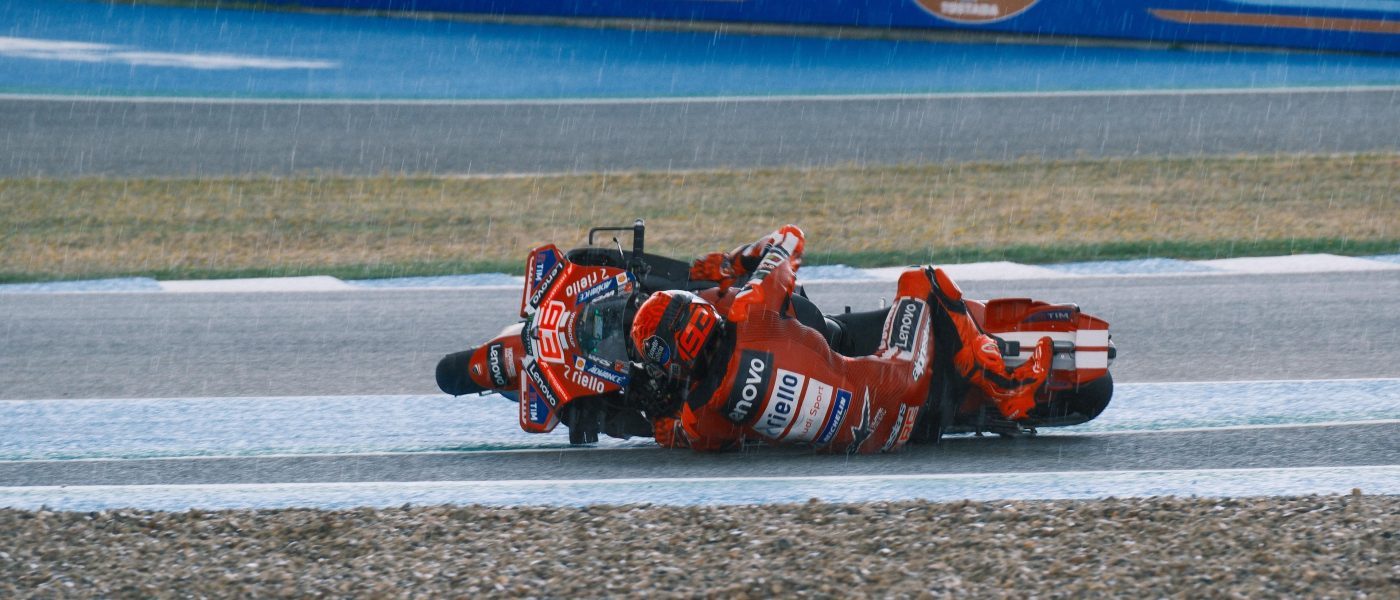 Sytuacja, która zadecydowała o losach sprintu, była nietypowa – jak to często bywa w przypadku Marca Marqueza. Hiszpan, jadąc na drugim miejscu w coraz trudniejszych, deszczowych warunkach, na pięć okrążeń przed metą sprintu przewrócił się w ostatnim zakręcie. Marc, podobnie jak reszta stawki, jechał na slickach, a deszcz padał coraz mocniej. Ten błąd – paradoksalnie – ustawił go w idealnej pozycji strategicznej. Po podniesieniu motocykla Marquez nie wrócił od razu do ścigania, lecz zatrzymał się na poboczu, przepuścił wszystkich rywali i dopiero wtedy zdecydował się na zjazd do alei serwisowej.