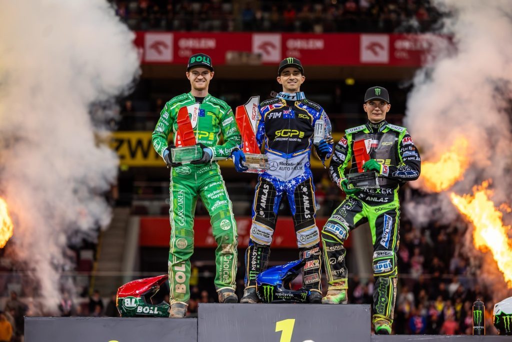 Podium SGP w Warszawie, od lewej Brady Kurtz (2. miejsce), Jack Holder (zwycięzca) i Patryk Dudek (3. miejsce) /// fot. Mateusz Wójcik/Monster Energy
