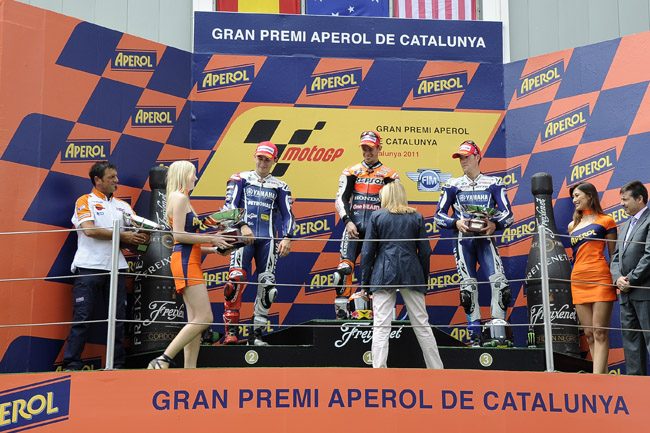 W Hiszpanii Casey Stoner znów objechał rywali, mimo, że pogoda próbowała podnieść zawodnikom ciśnienie strasząc deszczem. W połowie wyścigu dyrekcja zezwoliła nawet na wymianę motocykli na te z deszczowymi oponami, ale żaden z zawodników nie skorzystał z tej możliwości. Drugi na mecie był idol miejscowej publiczności, Jorge Lorenzo, który dzięki kolejnym 20 punktom pozostał liderem klasyfikacji generalnej. Trzecie miejsce przypadło Benowi Spies, który zaliczył pierwsze podium w fabrycznym zespole Yamaha. W Barcelonie zabrakło Daniego Pedrosy, który nie zdążył wyleczyć obojczyka po wypadku we Francji.