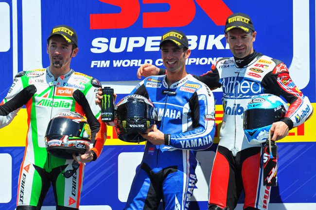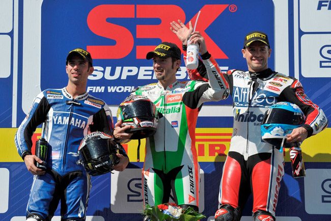 Oba wyścigi klasy Superbike miały trzech aktorów, którzy okupują też najwyższe miejsca w klasyfikacji generalnej. Pierwszy wyścig wygrał Marco Melandri przed Maxem Biaggim i Carlosem Checą. W drugim starciu Włosi zamienili się miejscami, a Checa znów był trzeci utrzymując pozycją lidera w punktacji sezonu.