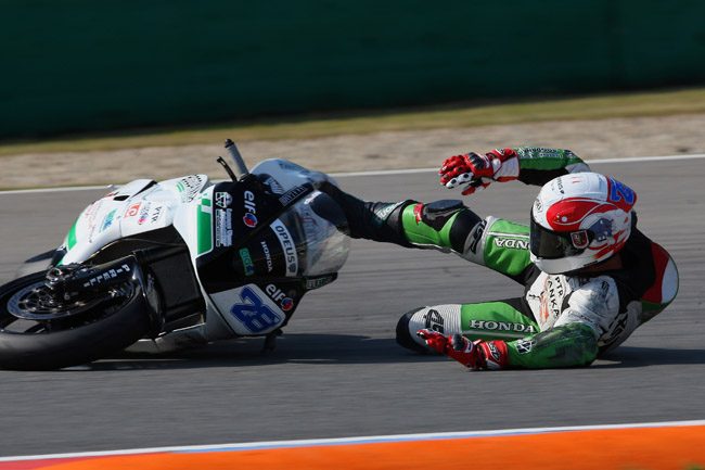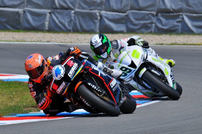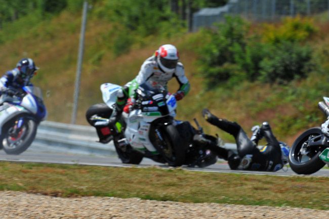 W Supersport wszyscy liczyli na kolejne punkty Pawła Szkopka, który bardzo się starał już podczas treningów dwukrotnie lądując w żwirze. Trzeci dzwon weekendu nastąpił w pierwszym okrążeniu wyścigu (zdjęcia z dwóch upadków znajdziecie w tej relacji, trzeci w sierpniowym numerze Świata Motocykli) i to był koniec marzeń o dobrym wyniku. W pierwszym lewym zakręcie z toru wypchnął Pawła Vladimir Ivanov i Polak wbił się razem ze swoim motocyklem w bandę ochronną. Zanim przy pomocy wirażowych „odkopał” swój motocykl peleton był już daleko. Szkopek próbował jeszcze kontynuować jazdę, ale ostatecznie zjechał do boksu na koniec żegnając się z publicznością na stadionie jazdą na jednym kole.