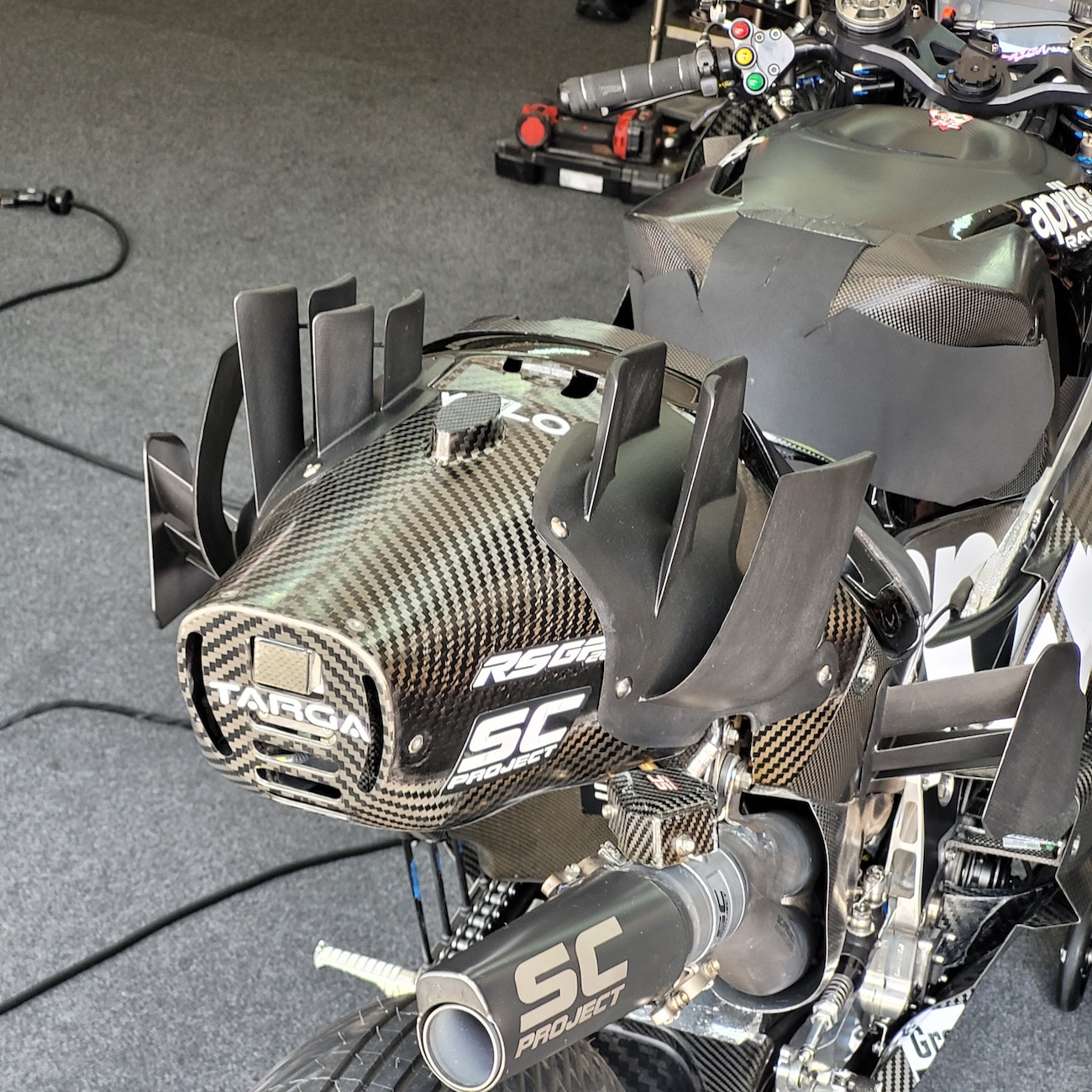 Podczas testów sprawdzano również górną część owiewki w dwóch wariantach – wąskim i standardowym. Ostateczna decyzja o wersji, którą homologuje Aprilia, miała zapaś już po testach Buriram. Celem było sprawdzenie obu rozwiązań na dwóch zupełnie różnych torach – w Malezji i Tajlandii.