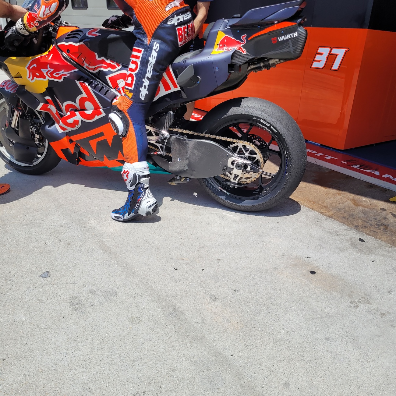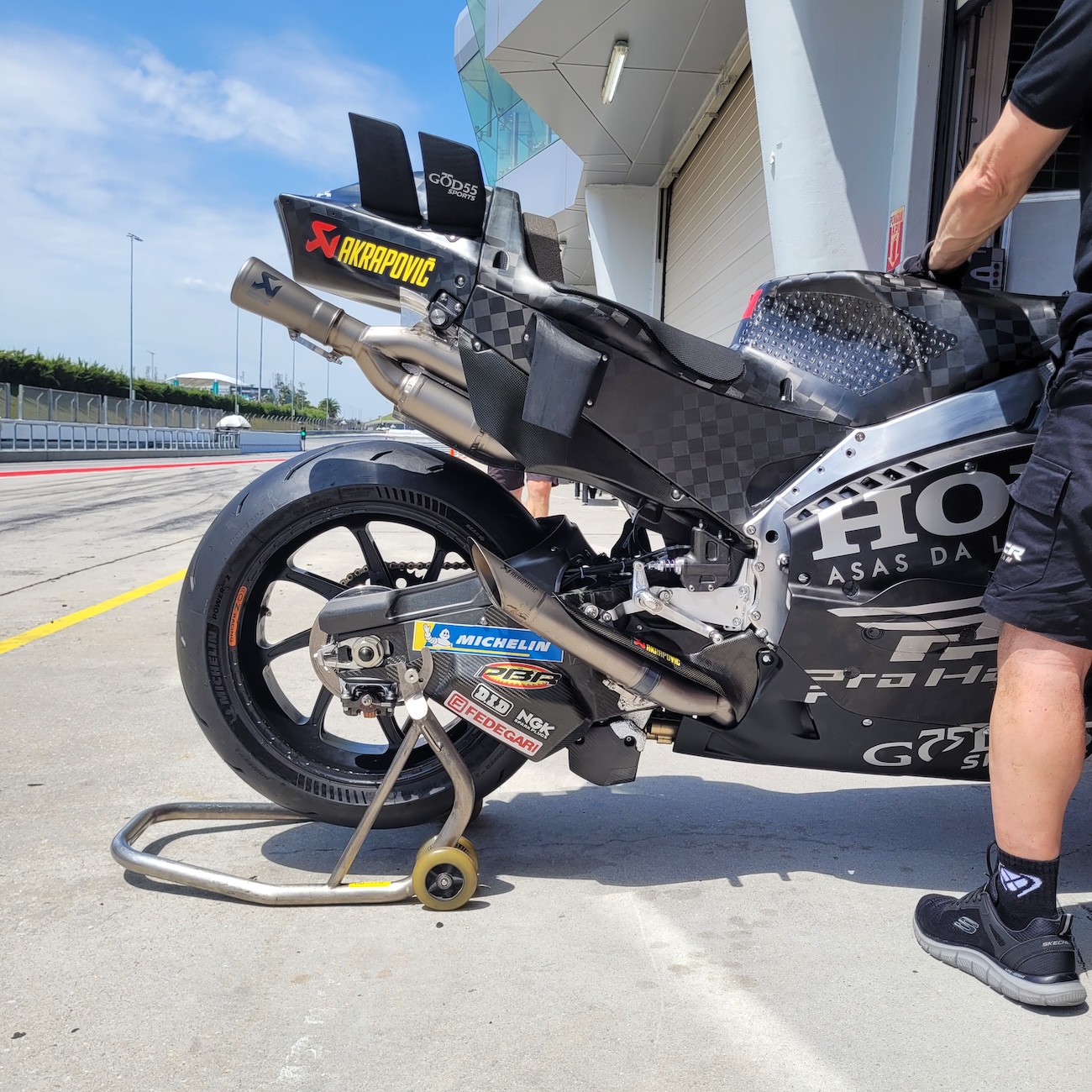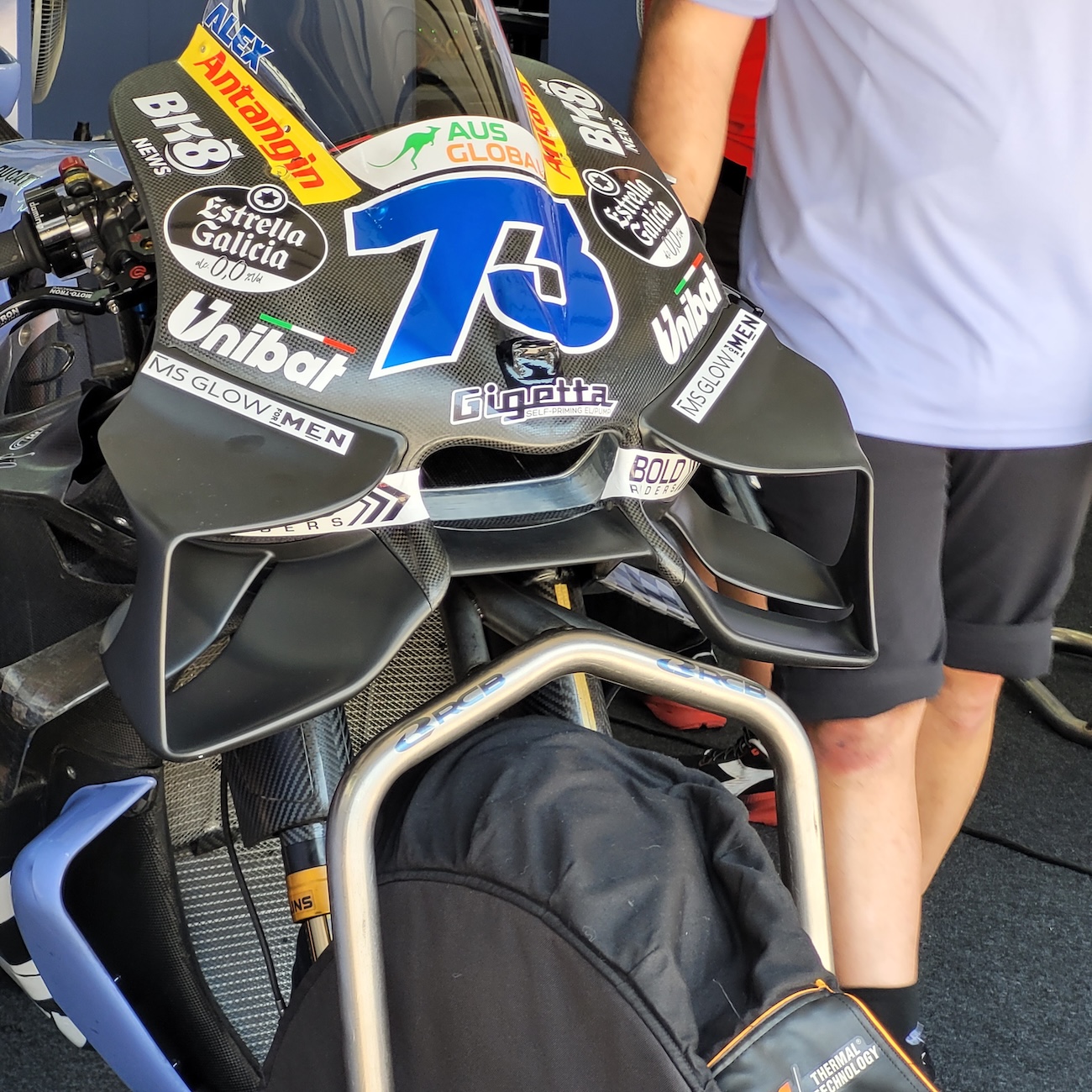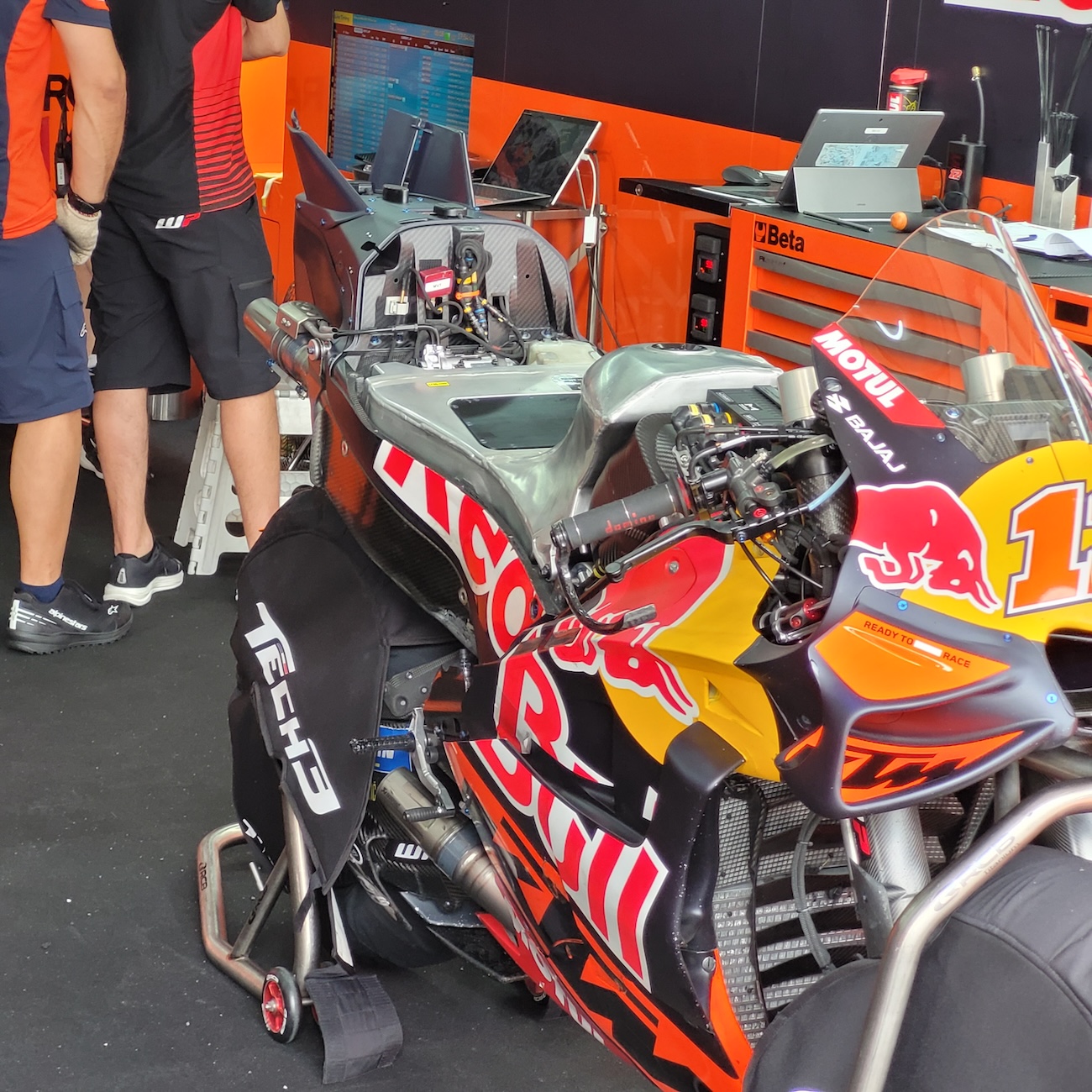 Pedro Acosta przeprowadzał także symulacje wyścigowe z owiewką o klasycznym wyglądzie, ale zwężoną w górnej części. Pomaga to w skręcaniu, ponieważ podczas mocnego wychylenia ciała do wewnątrz działa jak swego rodzaju „ruchoma aerodynamika”.