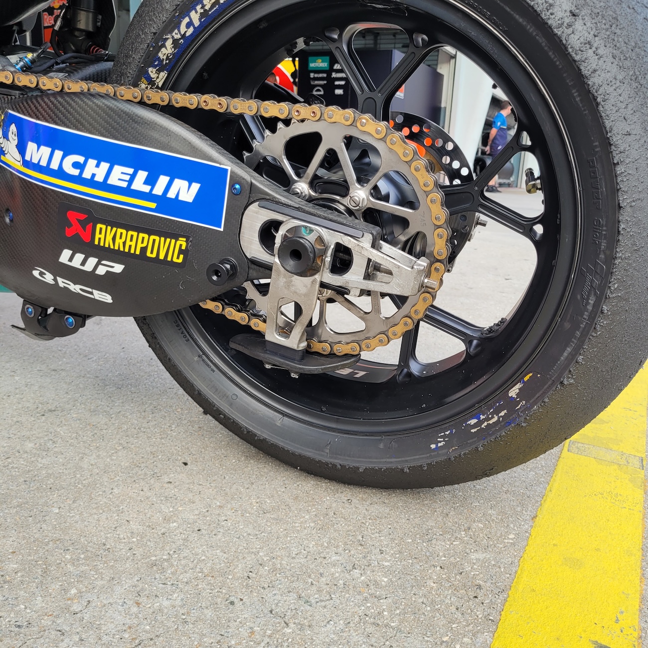 Motocykle na sezon 2026 otrzymały karbonowy wahacz, a z włókna węglowego wykonano nawet elementy mocowania tylnego koła – rozwiązanie podobne do tego, które stosuje Aprilia.