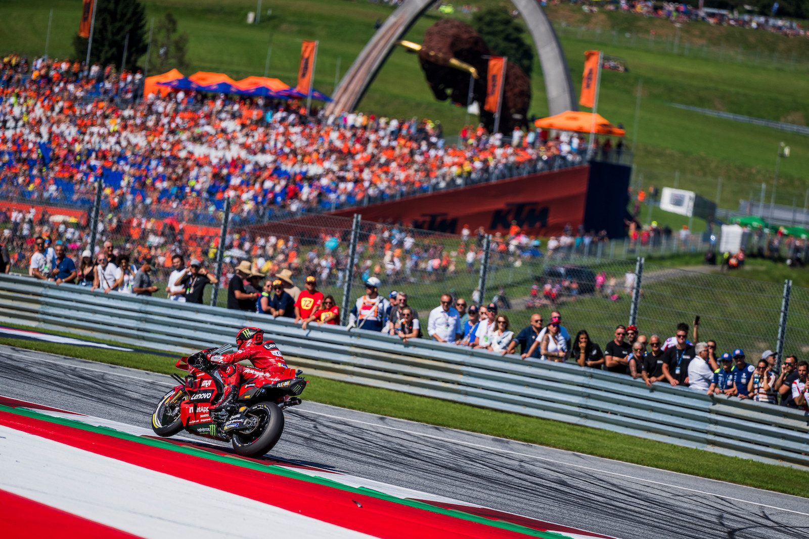 Ostatecznie na czele nic się nie zmieniło – Pecco Bagnaia wygrał piąty wyścig główny w sezonie 2023, notując imponujące tempo na przestrzeni całego dystansu. Dla Włocha to także jubileuszowe, pięćdziesiąte podium w karierze Grand Prix. Ponad pięć sekund za nim na metę wpadł Brad Binder, zdobywając domowe podium dla KTM-a. Czołową trójkę uzupełnił tymczasem Marco Bezzecchi, wskakując na tę lokatę na kilka okrążeń przed metą.