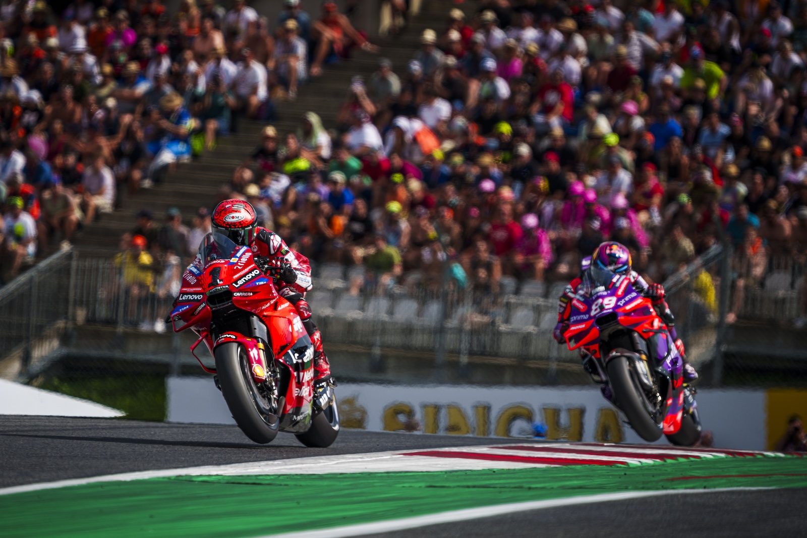 Na prowadzeniu radość Martina nie trwała jednak długo, bo już na wejściu w pierwszy zakręt drugiego okrążenia to Bagnaia opóźnił hamowanie i został nowym liderem wyścigu. Początkowo dwójka ta jechała niemalże jak w transie, notując bardzo zbliżone czasy okrążeń. Do przełamania doszło dopiero w połowie dystansu, gdy prowadzący Pecco był w stanie urwać się od swojego rywala na ponad sekundę.