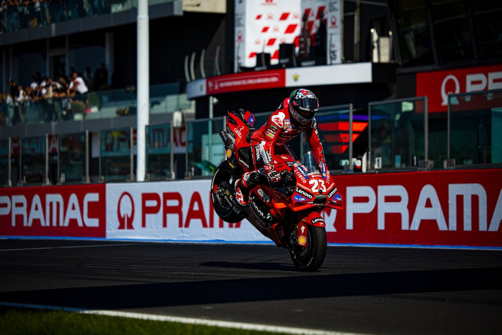 Faworytami przed niedzielnym wyścigiem o GP Emilii-Romanii był Pecco Bagnaia, który w sobotę sięgnął po pole position i wygrał sprint oraz oczywiście lider mistrzostw Jorge Martin. Duet ten przed startem dzieliły zaledwie cztery punkty. Co ciekawe, dla Włocha był to setny wyścig z Ducati, które to mogło sięgnąć po swój setny triumf w MotOGP. Mało tego, włoski producent już po tym wyścigu mógł zapewnić sobie… piąte z rzędu mistrzostwo wśród konstruktorów. Chociaż do końca rywalizacji wciąż pozostało sześć rund i 222 punkty do zdobycia, przewaga Ducati nad KTM-em przed wyścigiem w Misano wynosiła 229 pkt.
