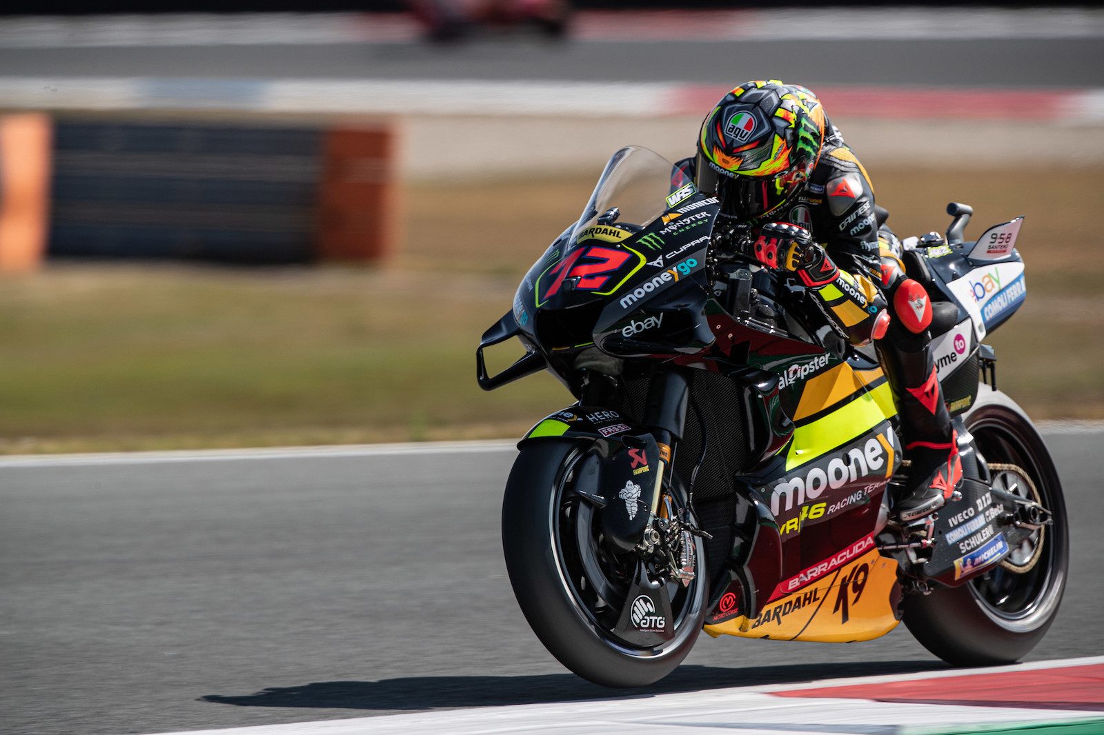 Lider mistrzostw Pecco Bagnaia, po trudnej pierwszej sesji i problemach z przodem swojego Ducati, ostatecznie był czwarty i tylko o dwie dziesiąte wolniejszy od Bezzecchiego. Czołową piątkę zamknął z kolei Maverick Viñales, który rok temu na Assen wywalczył pierwsze podium z Aprilią. Po trudnym weekendzie w Niemczech, w Holandii – po zmianie silników w obu RS-GP, które, jak się okazało, były popsute – Hiszpanowi idzie znacznie lepiej.