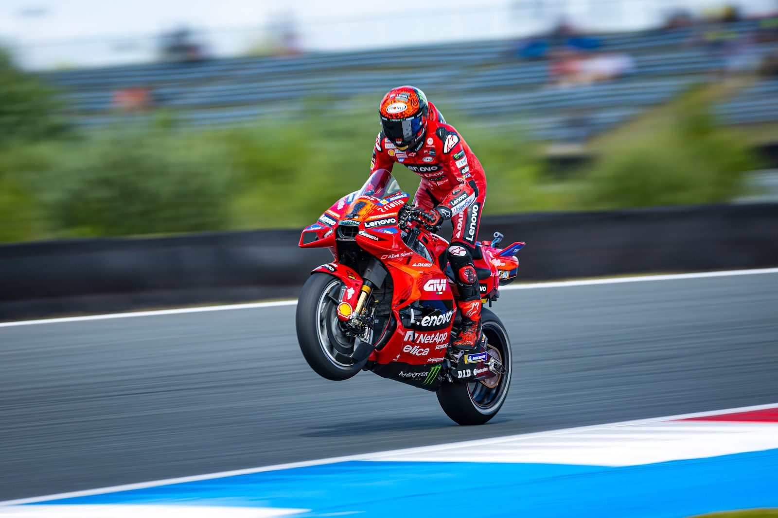 Chociaż Jorge Martin kilkukrotnie „szarpał”, ostatecznie Pecco Bagnaia zdecydowanie mu odjechał i sięgnął po zwycięstwo, notując w zasadzie perfekcyjny weekend w Holandii. „Martinator” musiał zadowolić się drugą lokatą, ale to on pozostaje liderem mistrzostw. Włocha i Hiszpana dzieli jednak w „generalce” zaledwie 10 punktów, więc będzie gorąco.