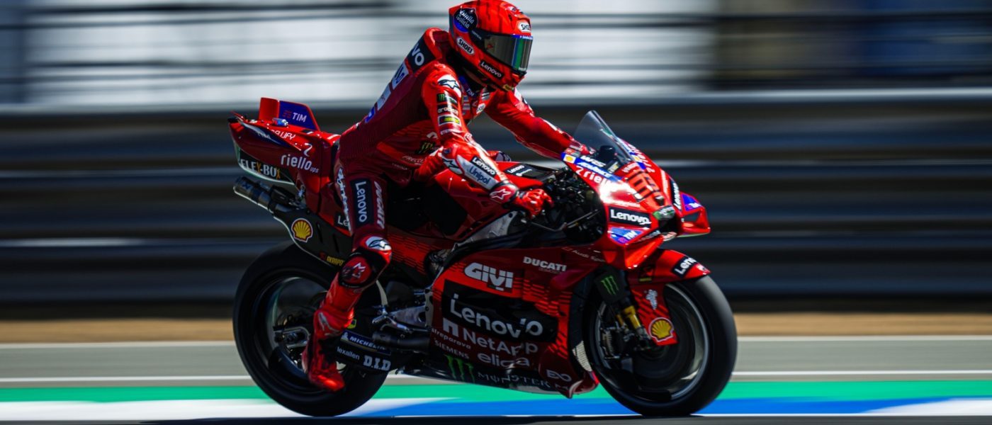 Marc Marquez podczas testów na torze Chang mocno pracował nie tylko nad pozycją na motocyklu, by czuć się na nim jeszcze bardziej komfortowo, ale przede wszystkim – nad tempem wyścigowym. Hiszpan ostatniego dnia prób przejechał niemalże pełną symulację wyścigową (23 okrążenia) i uzyskiwał podczas niej świetne czasy (średnia 1’30.4), wysyłając klarowny sygnał do swoich rywali. Na jednym kółku to także on był najszybszy, zatrzymując stoper na wyniku 1’28.855 i zbliżając się na nieco ponad jedną dziesiątą sekundy do rekordu obiektu z ubiegłorocznych kwalifikacji. Pół sekundy do Marqueza stracił jego team-partner, ostatecznie piąty Pecco Bagnaia, który także notował bardzo dobre wyniki podczas symulacji wyścigowej, jednak nie tak dobre, jak te w wykonaniu Marca. Ducati jednocześnie podjęło decyzję, że w najbliższych dwóch sezonach (zamrożony rozwój silników ze względu na zmiany w sezonie 2027) korzystać będzie z silnika w specyfikacji 2024, a nie 2025.