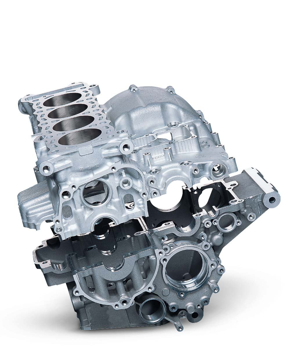 Jednostka napędowa musi być oczywiście przygotowana do roli nośnej i to nie tylko poprzez zaprojektowanie odpowiednich nadlewów czy otworów. Proces odlewania bloku cylindrów razem z górną częścią korpusu silnika, w istotny sposób podwyższający sztywność jednostki napędowej przy zachowaniu niskiej masy własnej, wiąże się między innymi z jej nośną funkcją.