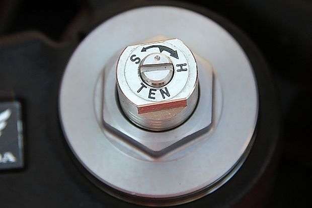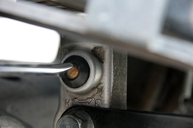 – podczas jazdy z dużą prędkością na długim zakręcie (w dużym pochyleniu) kołysze cały motocykl lub tylko przód wydaje się miękki. Diagnoza – za małe tłumienie odbicia w obu kołach lub z przodu, wkręcić śrubki w kierunku Hard w odpowiednich amortyzatorach.