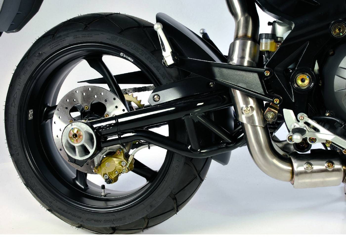 Wysokość pojazdu to rodzaj dźwigni, która prowadzącemu ułatwia balansowanie motocyklem. Ale nawet gdy konstrukcja nośna maszyny jest mocno wyciągnięta ku górze, czy to ze względu na sportowy charakter czy z uwagi na duży skok zawieszeń, jego środek ciężkości powinien być ulokowany możliwie nisko. Sprzyja to stabilności pojazdu.
