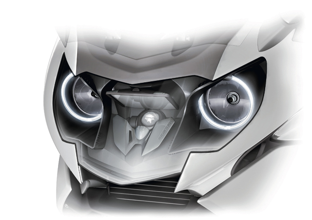 Zarówno lustro, jak i obudowa żarnika osadzone są na przegubach. Za precyzyjne ruchy elementów odpowiedzialne są elektryczne silniki krokowe. Otrzymują one polecenia od centralnego sterownika elektronicznego, przeliczającego dane z czujników zamontowanych przy przedniej i tylnej osi. Informacje przesyłane są magistralą elektroniczną CAN, wykorzystywaną również na potrzeby systemu kontroli trakcji DTC i układu przeciwpoślizgowego ABS. Algorytmy sterowania dla nowego reflektora opracowało BMW. Rolę świateł drogowych powierzono dwóm reflektorom halogenowym wykonanym w technologii FF, wyposażonym w dodatkowe, stale włączone pierścienie świetlne na obrzeżach. Takie pierścienie zmniejszają efekt wyjątkowo mocnego oślepiania, charakterystyczny dla wydajnych punktów świetlnych o małej średnicy. Reflektor K 1600 GT/GTL zatem wygląda bardzo podobnie jak reflektory w samochodach BMW.