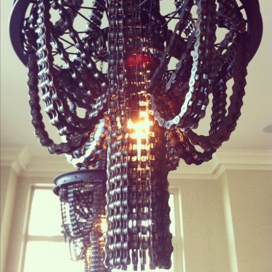 Sprawdźcie sami jak fajne rzeczy można zrobić. Zresztą takie zagospodarowanie starych części motocykla ma same plusy. Po pierwsze moda na awangardowy, industrialny styl- zachwyt gości murowany, po drugie oczędność- po co kupować nowy żyrandol skoro można go zrobić z łańcucha, po trzecie recykling przecież są to materiały, które nadają się do ponownego wykorzystania.