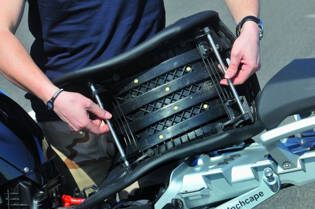 Standardowa wysokość kanapy R 1200GS to 850 mm. Dzięki wbudowanemu systemowi regulacji można ją podnieść o 20 mm.