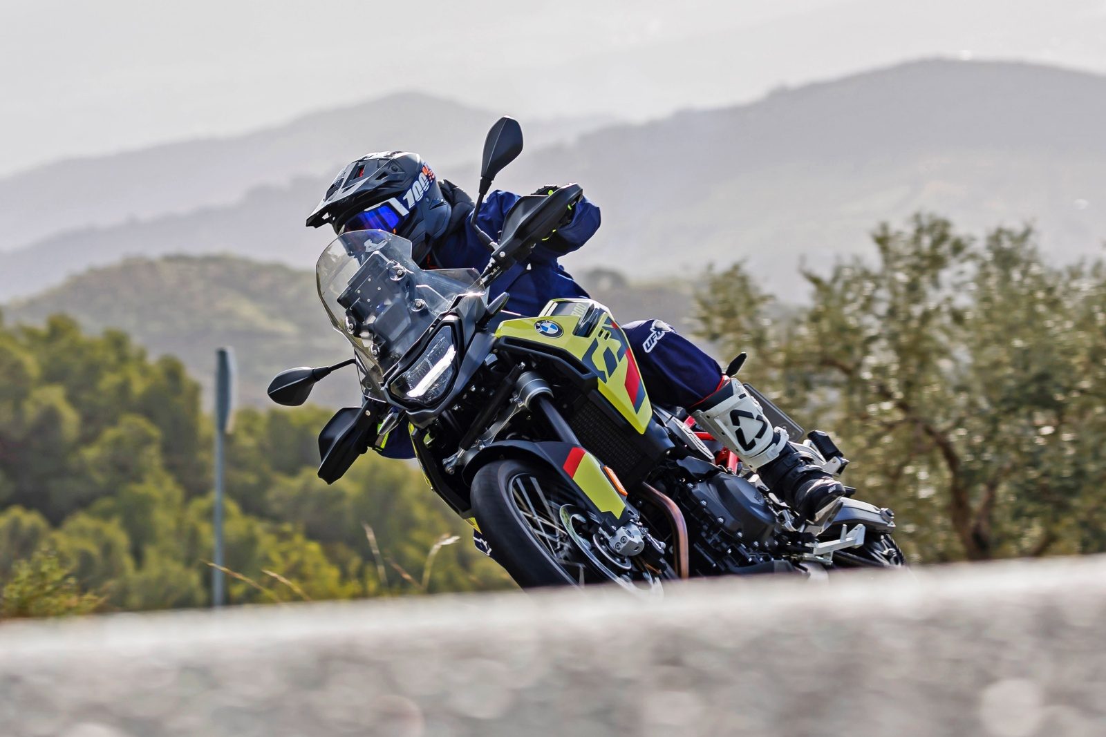Szybka jazda przychodzi mi o wiele łatwiej na asfalcie, niż w terenie i to na drogach nowe BMW pokazuje pełen potencjał. Demaskuje też chęci swoich potencjalnych klientów. Otóż jedynie 11% właścicieli modelu F 850 GS jeździło na swoich maszynach w terenie. To badanie przedstawił mi jeden z inżynierów BMW, któremu wierciłem dziurę w brzuchu o tym, że powinni zrobić nową ramę pod ten motocykl. Jazda po asfalcie wytłumaczyła wiele. Sytuacja ma się podobnie jak w przypadku Ducati Desert X. Obydwa motocykle są bardzo sprawnymi maszynami terenowymi, które rewelacyjnie jeżdżą po asfalcie. Na krętych drogach utwierdziłem się w przekonaniu, że motocykl jest świetnie wyważony i oferuje bardzo dużo przyczepności. Hamulce pomimo filigranowych rozmiarów nie rozczarowują siłą hamowania. Są takie w punkt. Z jednej strony oferują dobrą modulację w terenie, a z drugiej strony nie zawiodą na asfalcie. Silnik o wiele łatwiej polubić jest na asfalcie niż w terenie. Na szutrach był dla mnie aż zbyt ochoczy. Wkręca się na obroty bardzo szybko, a nieniska moc może nas zaskoczyć. To zupełnie inny charakter niż w przypadku Yamahy Tenere. Myślę, że moje dźwiękonaśladownictwo oddałoby lepiej tę różnicę. Dwucylindrowy rzędowy silnik Yamahy robi tak: BRAAP BRAAP… Jednostka BMW z takim samym układem cylindrów robi WRAAAAAAA! Na asfalcie takie działanie jest super. Jednostka gładko ciągnie już z niskich obrotów, odwijamy i jedziemy. Kolejne biegi bez problemu wrzucamy za pomocą rewelacyjnego quickshiftera i cieszymy się z zuchwałych prędkości w zakrętach, jakie osiągamy pomimo dużego i wąskiego przedniego koła. W terenie musimy być o wiele bardziej uważni z manetką gazu albo pozwolić pracować elektronicznym systemom. Na wstępie testu instruktor powiedział, że jeżeli chcemy jeździć „prawdziwymi” bokami w terenie, powinniśmy wyłączyć całkowicie kontrolę trakcji. W motocyklach BMW jest to bardzo proste, bo wystarczy w dowolnym momencie w trakcie jazdy lub postoju przytrzymać przypisany do tego zadania przycisk. Nie zgadzam się z panem instruktorem. Już w trybie Enduro (nawet nie Enduro Pro) kontrola trakcji działała dla mnie optymalnie. Normalna jazda to nie zawody driftu, dlatego, gdy wychodziłem z zakrętu w lekkim, ale płynnym uślizgu to było to dla mnie ok. Jeżeli kontrola trakcji jest dobra, to czemu z niej nie korzystać? Nie wtrącała się bez potrzeby, pozwalała unosić przednie koło, dla mnie git. Również układ ABS jest rewelacyjny. Bez problemu wyłączymy system na tylnym kole, więc możemy się poślizgać, a przód działa tak dobrze, że nie czułem potrzeby jego wyłączania.