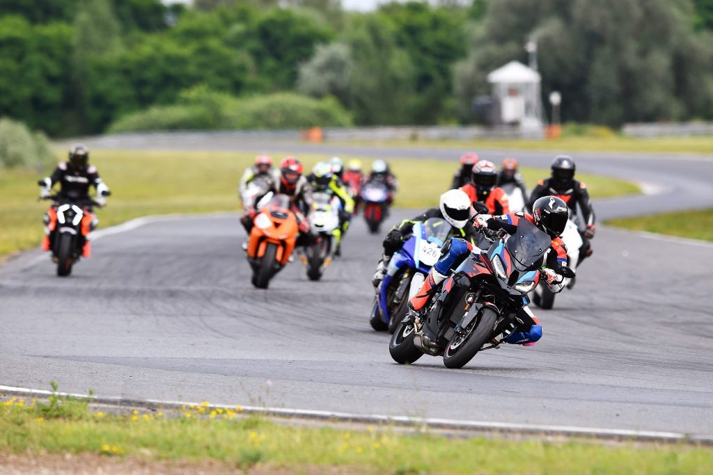 Na drodze… BMW nie miało lekko, bo pierwszy kontakt z torem miało na pełnowymiarowym obiekcie i od razu dosiadł go jeden z najszybszych polskich zawodników. Kamil Krzemień jeńców nie bierze, ale po pierwszej serii zjechał z toru ze zmieszanym wzrokiem. Motocykl ciągnie, jak wyścigówka, ale zawieszenie szybko wywiesiło białą flagę. Zostałem więc inżynierem wyścigowym Kamila i wprowadziliśmy zmiany. Napięcie wstępne tylnej sprężyny skręciliśmy pokrętłem na maksa oraz znacznie zwolniliśmy tłumienie widelca i tylnego amortyzatora. Pomimo tego, że motocykl był na seryjnych Bridgestone RS11, włączyliśmy tryb Race PRO, gdzie Kamil w trakcie jazdy mógł regulować poziom ingerencji kontroli trakcji. Układ ABS ustawiliśmy na najniższy poziom i Kamil ponownie wyjechał na tor. Poprawa była diametralna. Zawieszenie, jak na warunki torowe, wciąż było miękkie, ale zakres regulacji pozwolił sprawić, że motocykl stał się precyzyjny, trzymał linię i słuchał się Krzemienia. Teraz tylko wystarczyło go wyczuć.