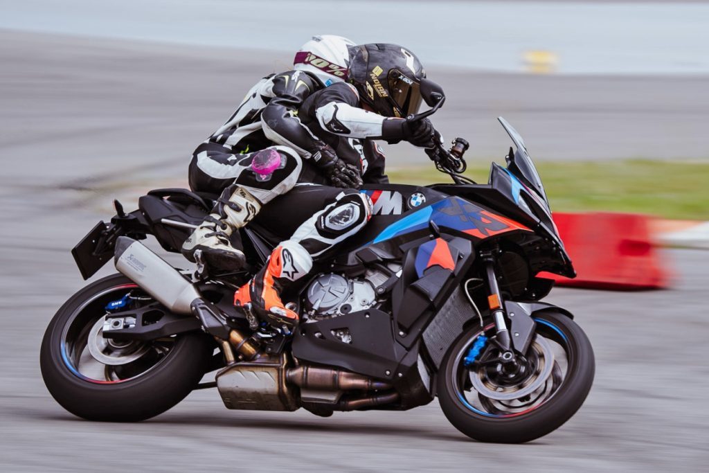 Ostatecznie największą różnicą w porównaniu do maszyn torowych było rozłożenie masy i sama waga motocykla. Dla mnie i pozostałych „normalnych” motocyklistów 223 kilogramy w pełni zatankowanej maszyny turystycznej to świetny wynik. Jak powiedziałem to Krzemieniowi, usłyszałem: ILE?! BMW M 1000 XR waży ponad 60 kilogramów więcej od wyścigowego S 1000 RR… Nie dziwne, że Kamil musiał się do tej masy nieco przyzwyczaić, w szczególności przy mocnych hamowaniach. Heble są potężne, ABS świetny, ale masy nie oszukasz. Jazda po dużym torze tempem wyścigowym maszyną z pudełka była więc nie lada wyzwaniem, ale…
