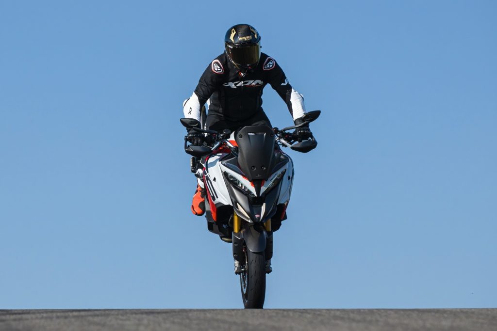 Multistrada daje nam pełną kontrolę i świetne wyczucie. BMW nie pozwala na długą jazdę na przednim kole. Prędzej, czy później ingeruje elektronika i opuszcza tylne koło na ziemię.