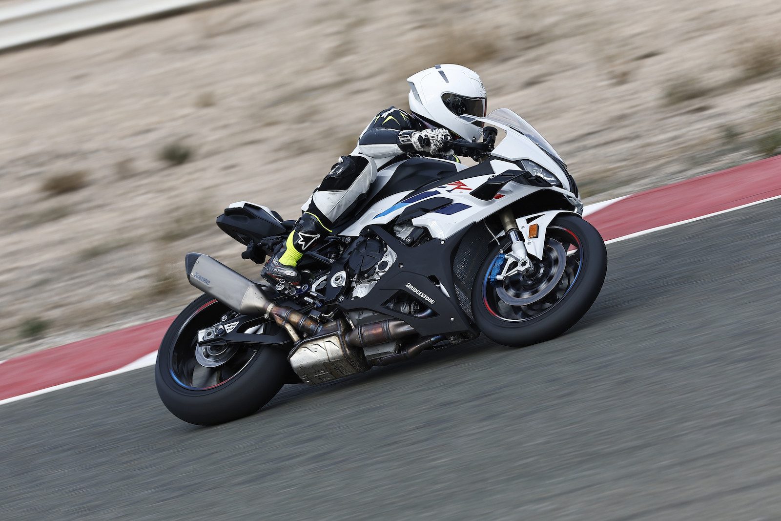 Motocykl w każdym miejscu toru jeździł jak wryty w asfalt i dawał mi poczucie pewności tam, gdzie mi go zazwyczaj brakowało. Na torze Almeria drugi zakręt prowadzi przez szczyt wzniesienia. Jesteśmy mocno złożeni, wyjście jest szerokie, więc gaz można odwijać soczyście. To zdradliwe miejsce, bo zaraz po przekroczeniu wzniesienia odciążona przednia opona może stracić przyczepność, a my koziołkujemy wtedy w kurzu, licząc w głowie czekające nas dni rekonwalescencji. Nowe S 1000 RR, poza zmianami w geometrii, korzysta ze skrzydełek zapożyczonych z poprzedniej wersji M 1000 RR. Temat docisku aerodynamicznego został już wyjaśniony i wiemy, że takie skrzydła po prostu działają. Myślę, że to właśnie one sprawiły, że w tym miejscu toru motocykl jechał jak przyklejony, a ja czułem się pewniej niż zwykle.