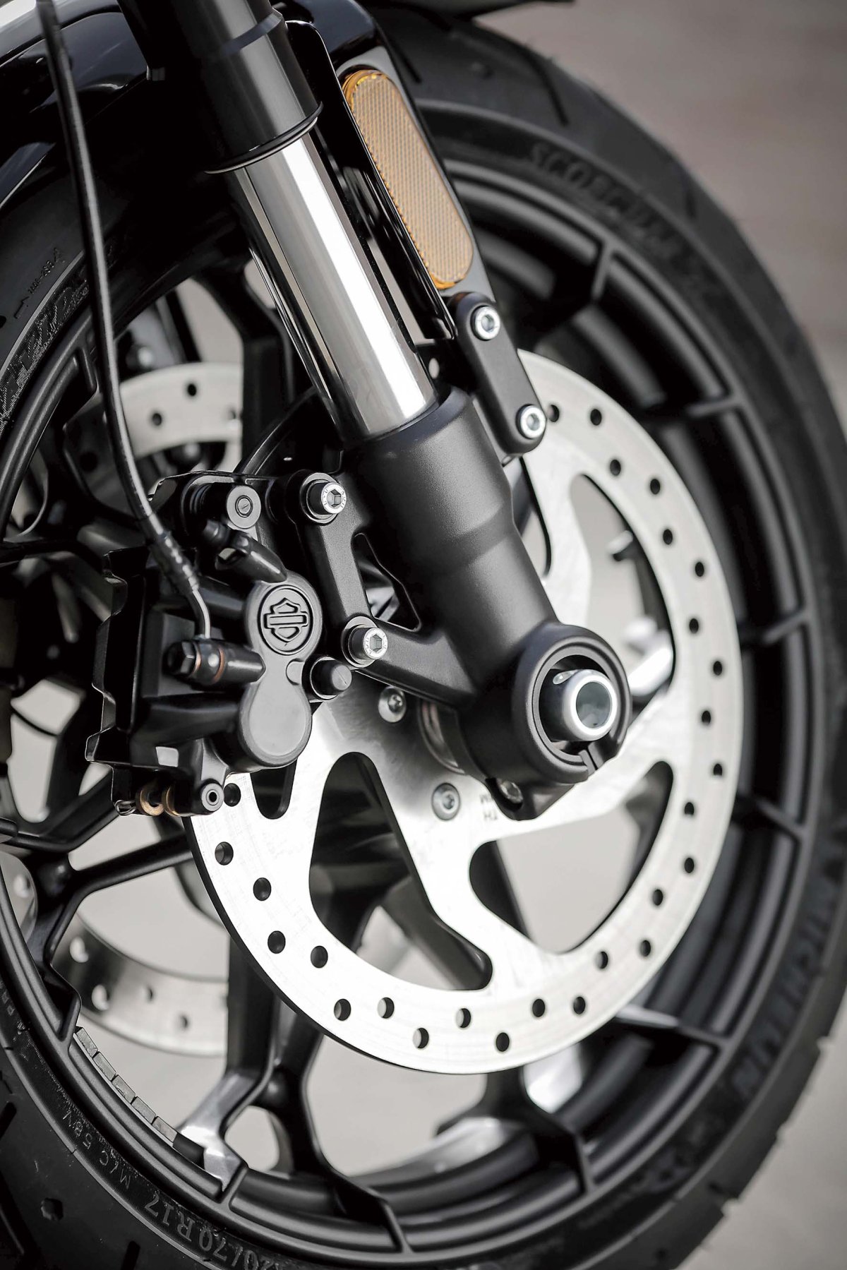 Ogromnym plusem są hamulce! Efektywny układ w H-D zdarza się rzadziej, niż entuzjazm u naszego Studenta, więc heble Street Rod zasługują na pucharek. Dwie tarcze o średnicy 300 mm i dwutłoczkowe zaciski z przodu w zupełności wystarczają do szybkiego wytracania prędkości. Co ciekawe, taka sama tarcza z takim samym zaciskiem wylądowała na tyle. Gdyby nie dobrze pracujący ABS, każde dotknięcie nożnej dźwigni kończyłoby się obłokami białego dymu i utratą kontroli nad tyłem motocykla.