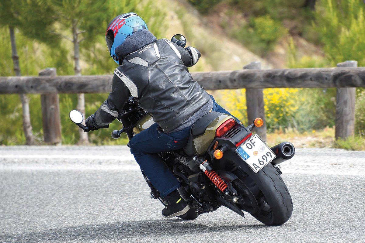 Fot. powyżej: Street Rod nie musi być zmuszany do jazdy po zakrętach. Im dłużej na nim jedziemy, tym sprawia więcej przyjemności. Odzież testera Kask schuberth s2, kurtka RS Taichi, rękawice Dane, buty Stylmartin.