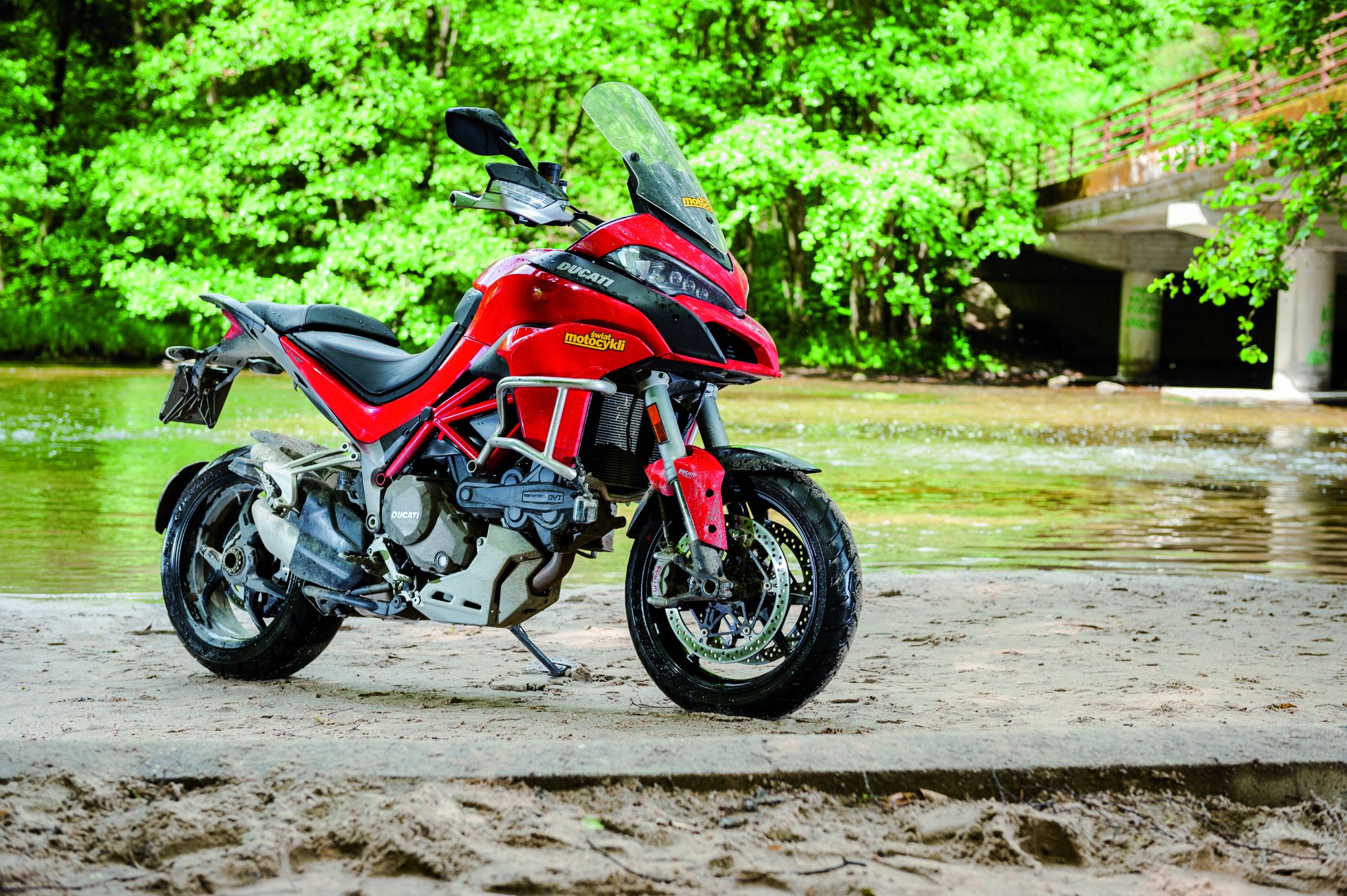 Nadal twierdzę, że Multistrada nie służy do szaleństw w terenie, choć ten fakt zupełnie jej nie przeszkadza w wychodzeniu bokami z zakrętów na szutrowych drogach, pokonywaniu leśnych ścieżek, rozległych łąk i brodzeniu w wodzie przy zanurzeniu „po sam nos” (dosłownie!). Początkowo trzeba się trochę oswoić z niemałą masą własną Multistrady. Pewność i swoboda prowadzenia przychodzi dość szybko i wtedy jest już tylko coraz lepiej. Obecny na naszych testach Clidanor Cano, mieszkający w Polsce Argentyńczyk, podróżujący na Multistradzie dookoła świata, przeprawił się na niej już przez niejedną rzekę. Tym razem dał się namówić na wspólne brodzenie w jednym z dopływów Noteci niedaleko Drawska. Można? Można! I nie sprawdziły się wizje kolegów, wieszczących rychłą śmierć cybermózgu Multistrady. Bez problemu wróciłem w siodle do domu, zatoczywszy jeszcze duże koło po zachodniej Polsce i pokonawszy ostatniego dnia testu kolejne 600 kilometrów.