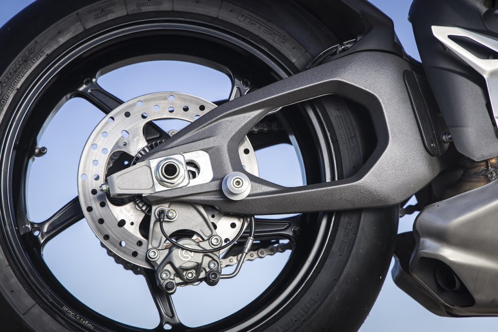 Dwustronny wahacz jest lżejszy i mniej sztywny od monowahacza. Motocykl zyskał na przyczepności.