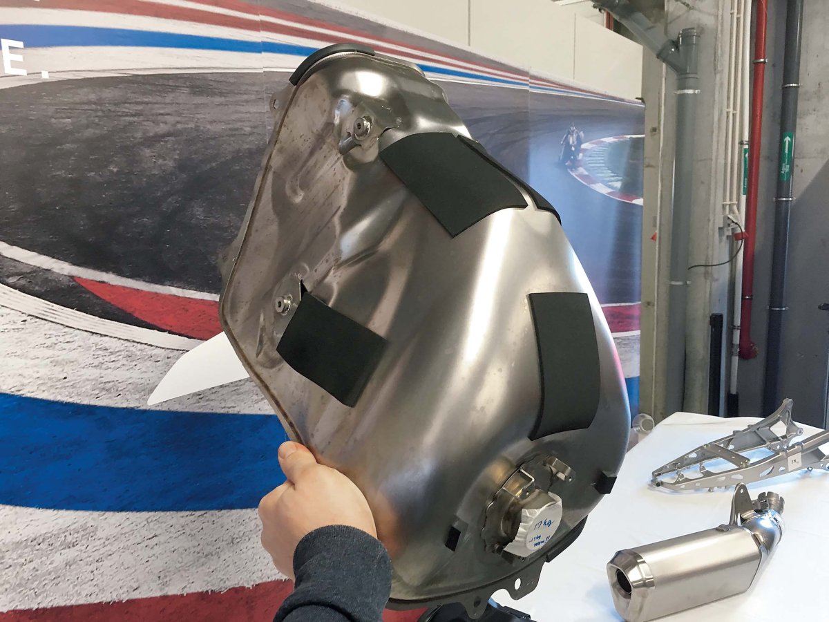 Fot. powyżej i poniżej: Fireblade w wersji SP to pierwszy motocykl drogowy wyposażony w tytanowy zbiornik paliwa. Oszczędność masy na szczycie maszyny ma duże znaczenie dla zawodników.