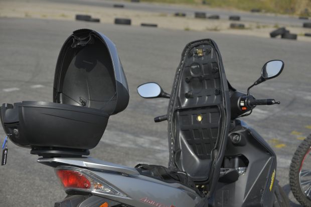 Każdy skuter ma pod siedzeniem schowek, w którym zazwyczaj zmieści się kask, rękawiczki, a może coś jeszcze. Tak więc parkujemy nasz jednoślad, pod siedzenie wrzucamy wszystkie akcesoria i jesteśmy wolni.