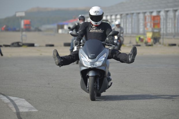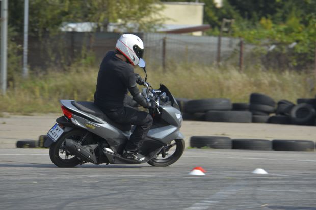 Wybór małych skuterów jest ogromny. Przyjmują formy zarówno klasyczne, jak i nowoczesne. Polecamy zakup skutera z możliwie dużymi kołami. Przykładem jest właśnie Honda PCX, którą widzicie. Jej wąskie i wysokie obręcze może nie wyglądają zbyt bojowo, ale im większa średnica kół, tym lepiej skuter będzie zachowywał się na nierównościach.