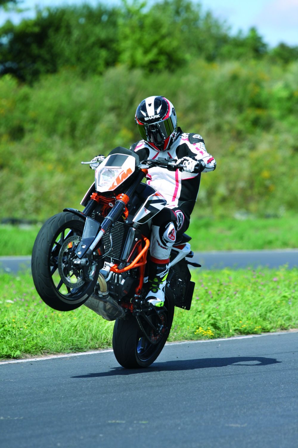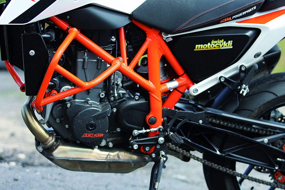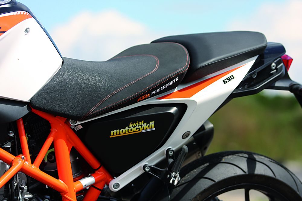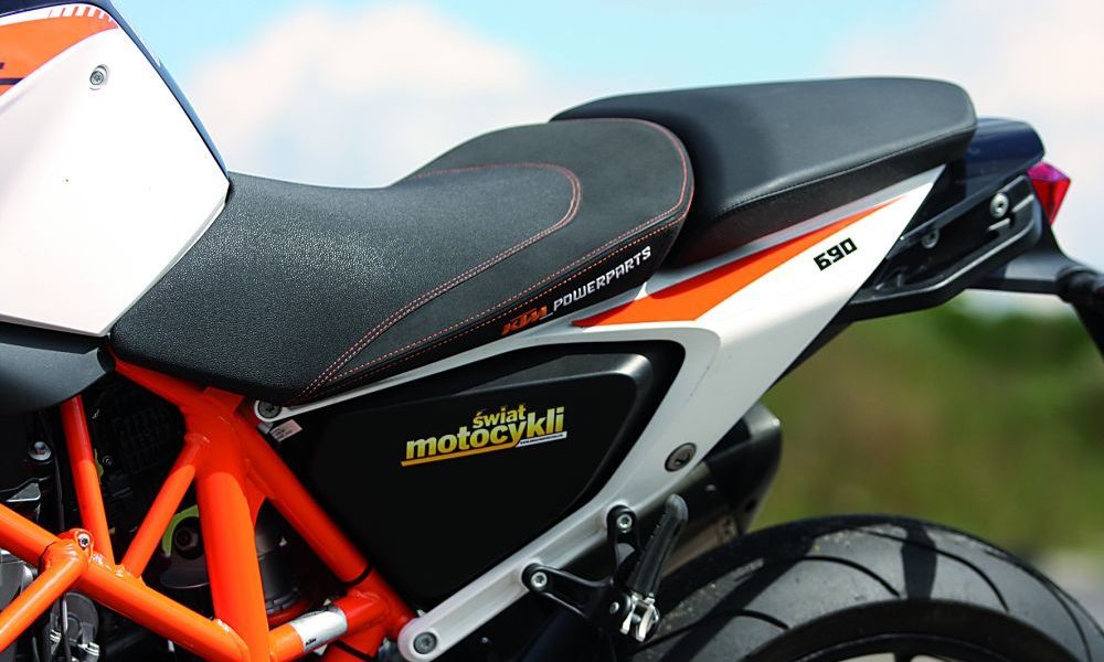 Następca, którego widzicie, został mocno wygładzony. Stonowana stylistyka i o wiele mniejszy entuzjazm do łamania prawa być może sprawiły, że po Duke’a sięgnęło więcej „normalnych” motocyklistów, jednak ja oraz fani poprzedniego 690 byliśmy mocno rozczarowani. Sprzęt stracił swoją oryginalność i dzikość. Muszę przyznać, że jest zdecydowanie bardziej wygodny od modelu 2011, przez co lepiej się sprawuje podczas codziennego użytkowania. Silnik łagodniej oddaje moment obrotowy i lepiej pracuje na niskich obrotach, dzięki czemu na uliczkach osiedlowych nie musimy jeździć na pół sprzęgle. Na krętych trasach jego osiągi są ok., jednak po tygodniu jazdy warszawskimi arteriami i trasami szybkiego ruchu zaczynamy być zmęczeni zadyszką maszyny powyżej 120 km/h.